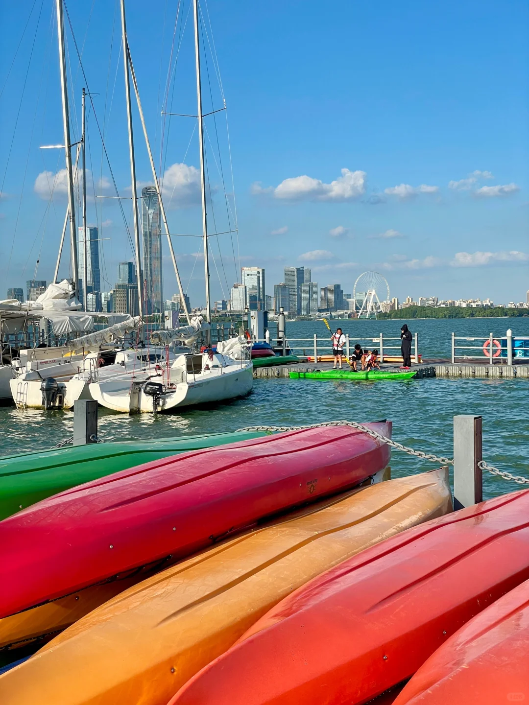 🚗上海出发1小时➡️⛵️风之园游船码头 在湖边吹着风遛弯太惬意啦~ 路边就可以停车🅿️ 游船码头有好多可以玩的! 咖啡厅,帆船,划船,皮划艇,多人自行车 还有🆓儿童乐园👉🏻🎡风之园儿童乐园 在湖边溜达10分钟左右就到苏州中心