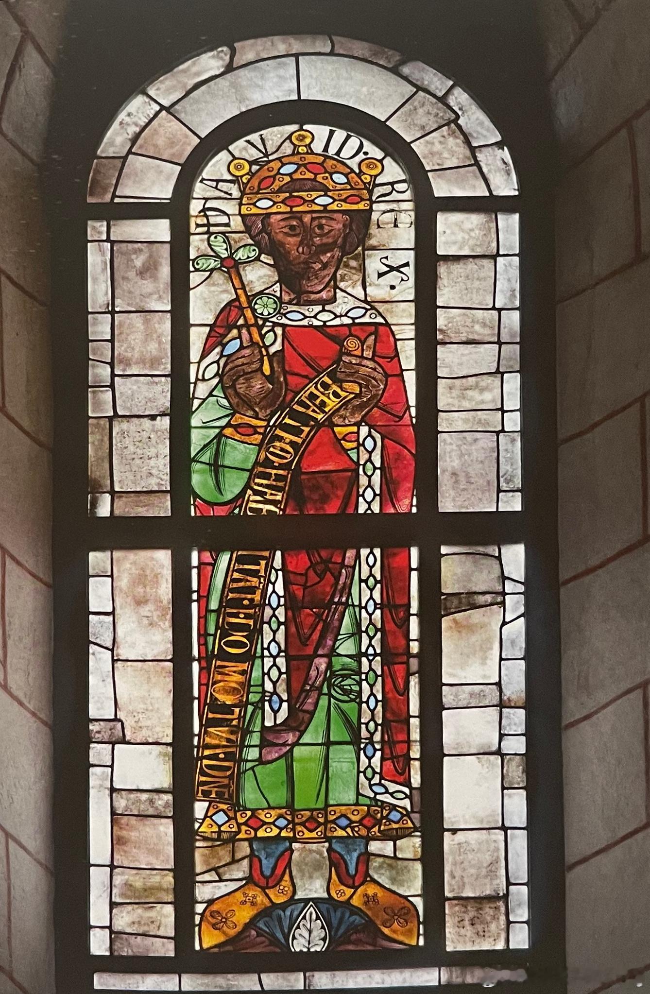德国现存最古老的玻璃彩绘位于奥格斯堡主教座堂的南侧高窗。《旧约》中原本有十一位先知,在这里以组画表现其中四位:约拿、但以理、何西亚与大卫,第五位先知摩西的图像于1550年左右经过大幅修复。镶嵌于圆拱形窗户中的玻璃彩绘,受限于宽厚的棕榈木窗条,而呈现出今日所见的高而窄的图画。人物端正地面向前方,两臂紧贴身体。每位先知都一手拿着飘带,一手举起做演说状:大卫右手还拿着一根权杖。其他先知们都戴着简单的犹太帽,只有大卫戴着镶有宝石的金冠。人物静止不动,脚上的便鞋对称外张,只有约拿脚下是大张的鱼口。冷峻的服装线条在色彩强烈的丰富细节中获得疏解,笔直垂落的衣摆饰有大量宝石。依据某份文献,描绘着众使徒的北侧窗户可能于1311年因冰雹风暴而毁坏殆尽。
