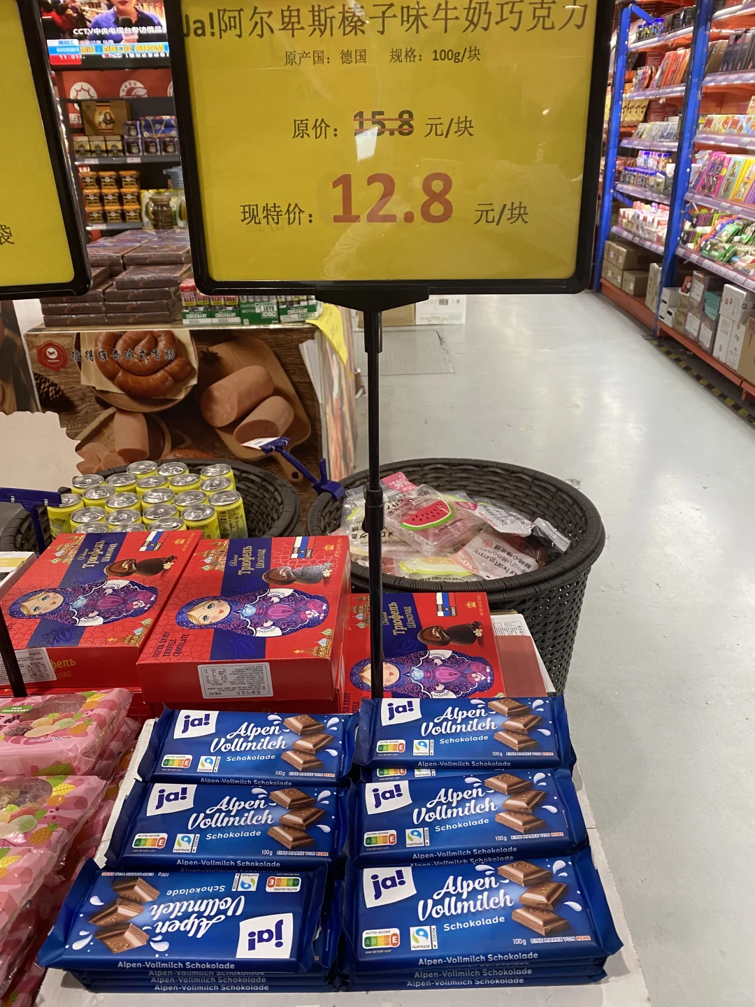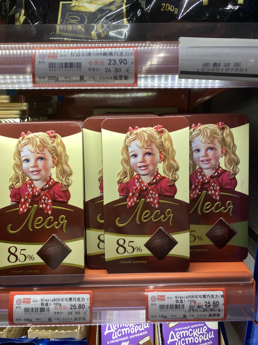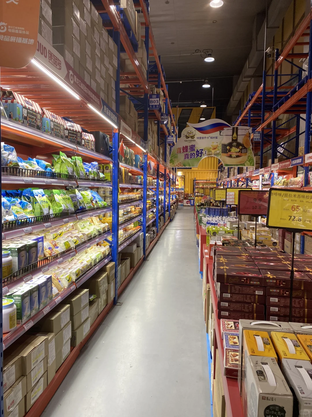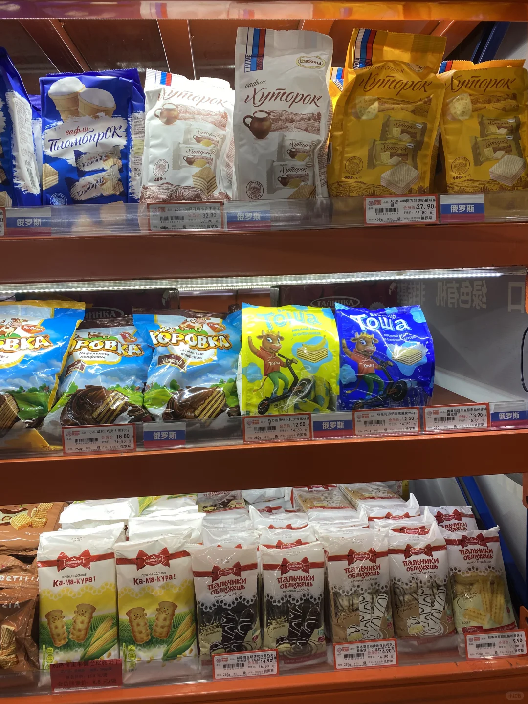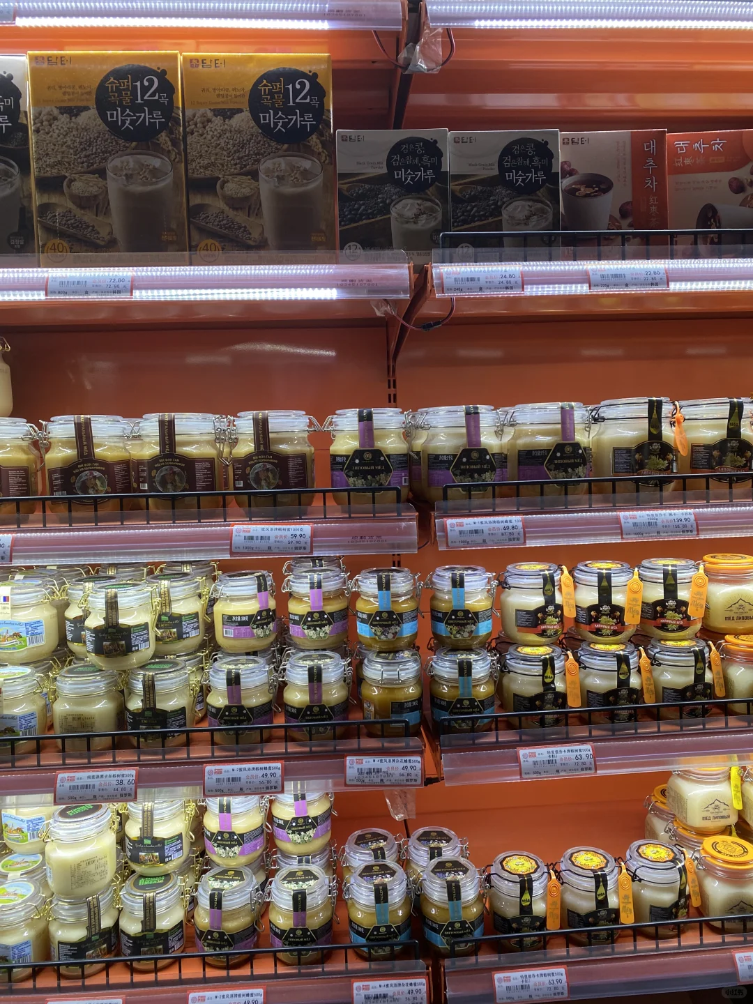[种草R]所以我打算进去逛逛,有一多半不是俄罗斯产品,而是韩国大麦茶,进口巧克力(非俄罗斯),不过这里就算俄罗斯产品最全的地方了,帮大家研究了一下,价格不贵,喜欢蜂蜜的朋友们可以来,这里还有挺多种类,奶粉,巧克力,糖果,饼干居多,还有啤酒