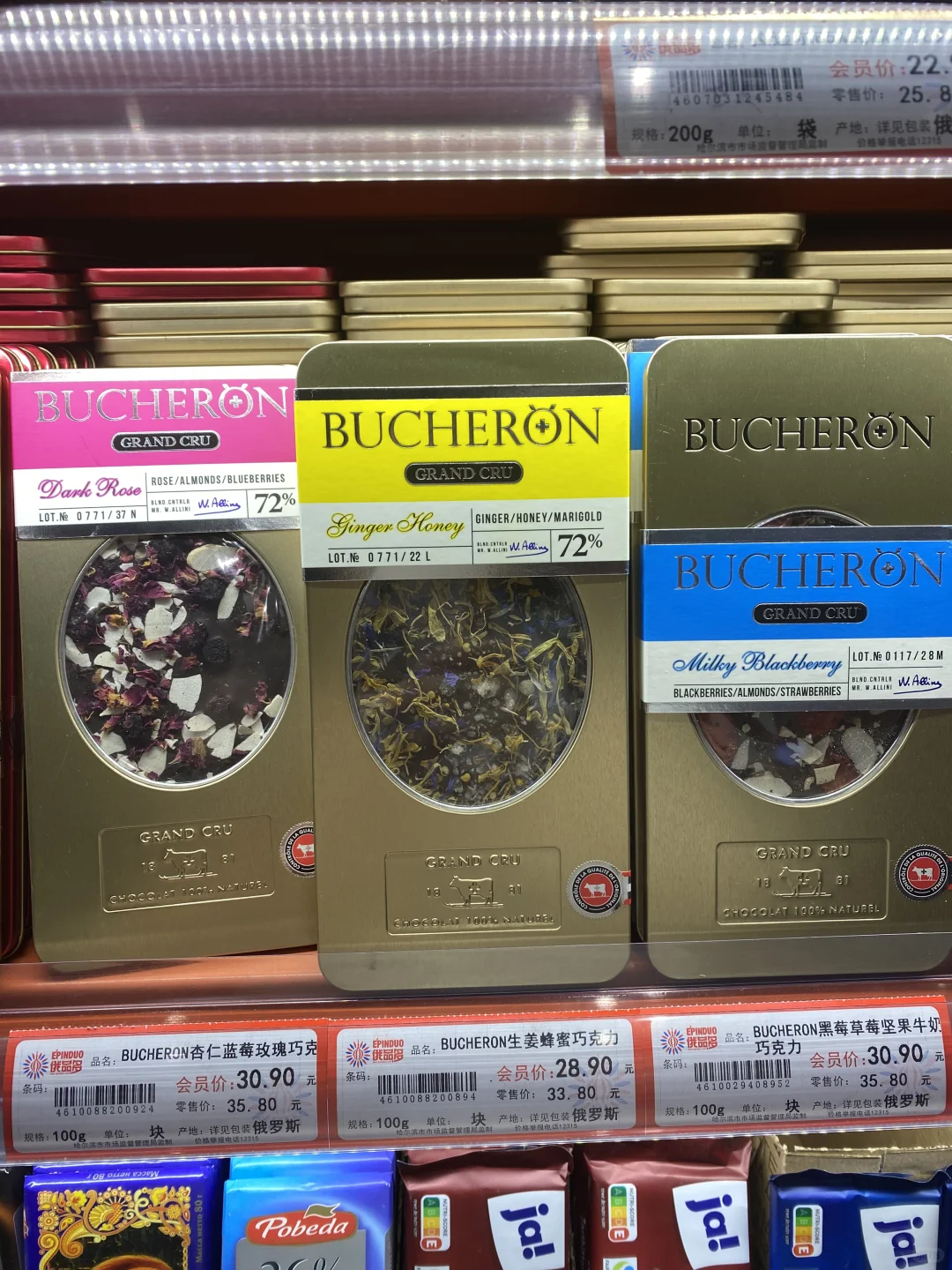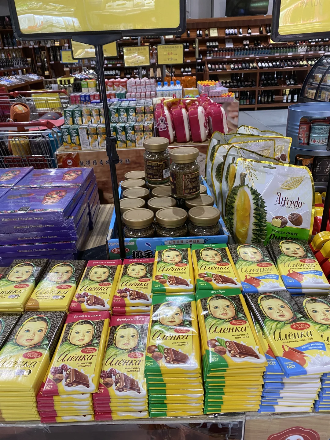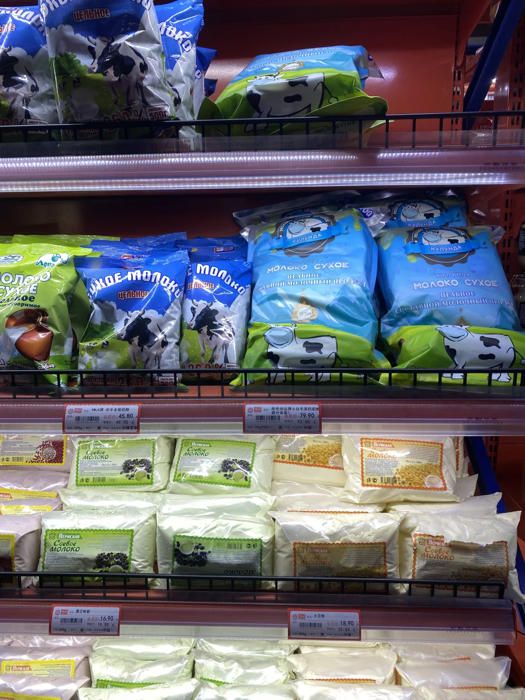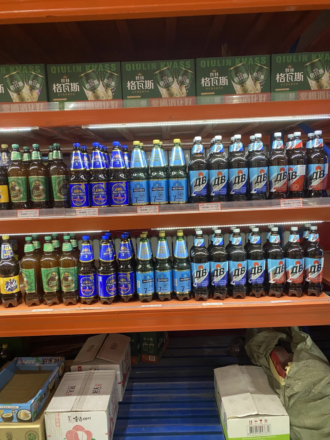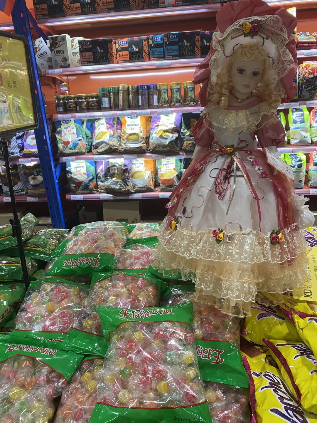 [种草R]所以我打算进去逛逛,有一多半不是俄罗斯产品,而是韩国大麦茶,进口巧克力(非俄罗斯),不过这里就算俄罗斯产品最全的地方了,帮大家研究了一下,价格不贵,喜欢蜂蜜的朋友们可以来,这里还有挺多种类,奶粉,巧克力,糖果,饼干居多,还有啤酒
