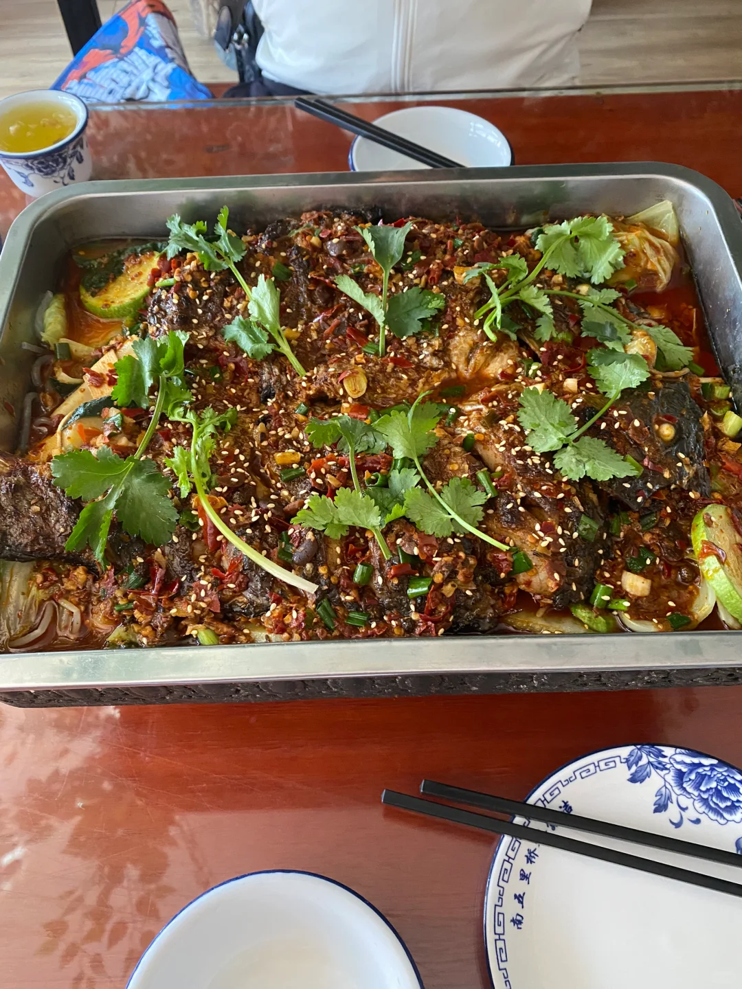 [种草R]大理古镇里,我们随便路过一家烤鱼,闻着味道特别香,但当晚已经吃过饭了,决定第二天中午来吃,这是一家清真餐厅,每一条鱼都是现杀,当着顾客面真正炭烤出来,再放锅里端上来的烤鱼,味道真的很好吃