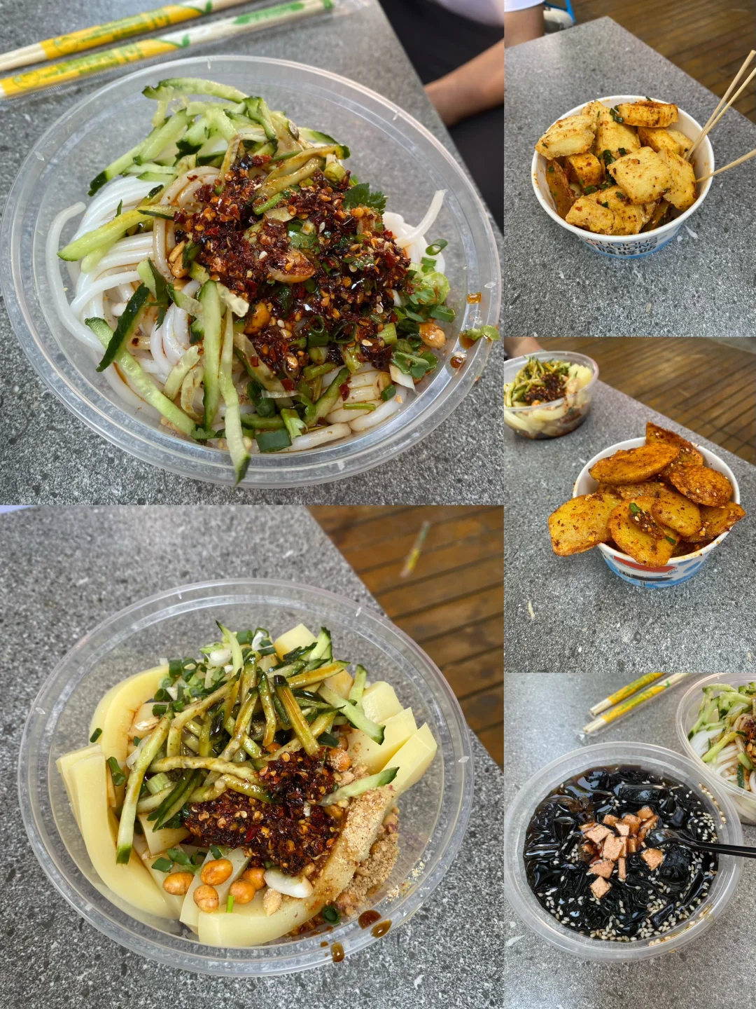 [种草R]图二的小吃是我们在昆明金殿后面的小吃街吃的,也许这里不是本地人认为正宗的,但我觉得每一个小吃都太吃了,凉拌米线我们吃了两份,炸土豆,炸豆腐,仙草冻都非常好吃