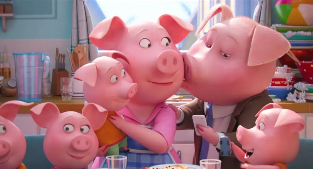 影片特别之处,把每个角色,三言两语就把性格交待的很清楚,如猪妈妈,能记住每个孩子的名字,把家里打理的井井有条,有梦想都要想办法去实现,妈妈是超人。如有天赋的猩猩强尼,没办法分辨爸爸做的对不对,但歌唱表演还是想让爸爸见证。。。