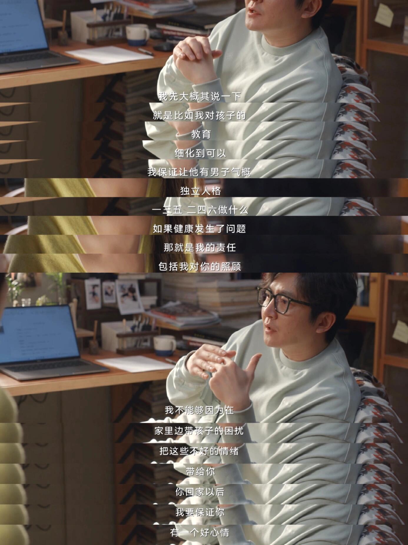 回到今天的内容上,在经历了之前保姆事件敲响的警钟后,周全深思熟虑后决定做“全职”,是通过与老婆比拟的经济价值发现自己处于下位,通过发现自己带的儿子越发比以往更独立更往好的道路走,这个深思熟虑是他作为老公作为爸爸身份时的深思熟虑,这种类型的男人真的百年一遇吧!