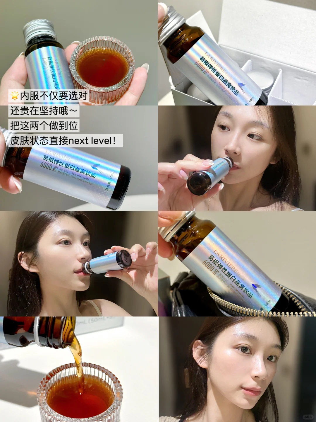 有没有跟我一样的姐妹! 25+的年纪还经常熬夜加班! 眼看着脸上的沟壑松垮感日渐明显 真的快要扛不住了٩(๑´0`๑)۶ 也尝试过很大风很大的抗老护肤品 但是用下来也没啥明显感觉 朋友跟我说,得内调外养效果才会明显😖 由内到外的改变真的很重要, 我就开始内调+外养一起上手啦~ - 一段时间坚持下来, 亲测素颜皮肤状态有优质的~飞跃! 我吃的是这款👉🏻山荷集葛根弹性蛋白胶原饮 简直是俺的k时光好搭子!! 多重成分搭配下来垮脸真的不是它的对手口 先从根源解决皮肤垮问题 ⭐甄选多重胶原蛋白肽 鱼胶原蛋白肽+弹性蛋白肽+鱼胶原蛋白三肽 还有海洋鱼子精华粉 多重胶原加持把流失的胶原蛋白补回来! 小分子喝进去都能有效吸收进去 还添加了⭐多种果蔬🫐菁萃 补充身体所需维C 让肌肤更加水润嫩滑 - 口感是酸酸甜甜的百香果味~ 适口性真的不错 这样可以很好坚持下去 定了个闹钟提醒自己内服一天不落 0糖0脂管理期的宝子们也能喝! 现在上班都素颜出门!根本没在怕! 胶原蛋白真的要趁早兜住!内服要趁早! 同时也要勤勤恳恳认真护肤 好皮肤跑不了的!