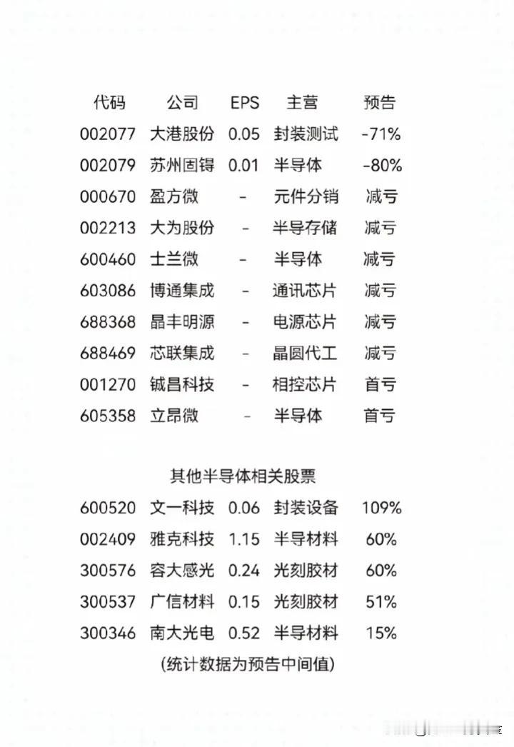 半导体中报预告