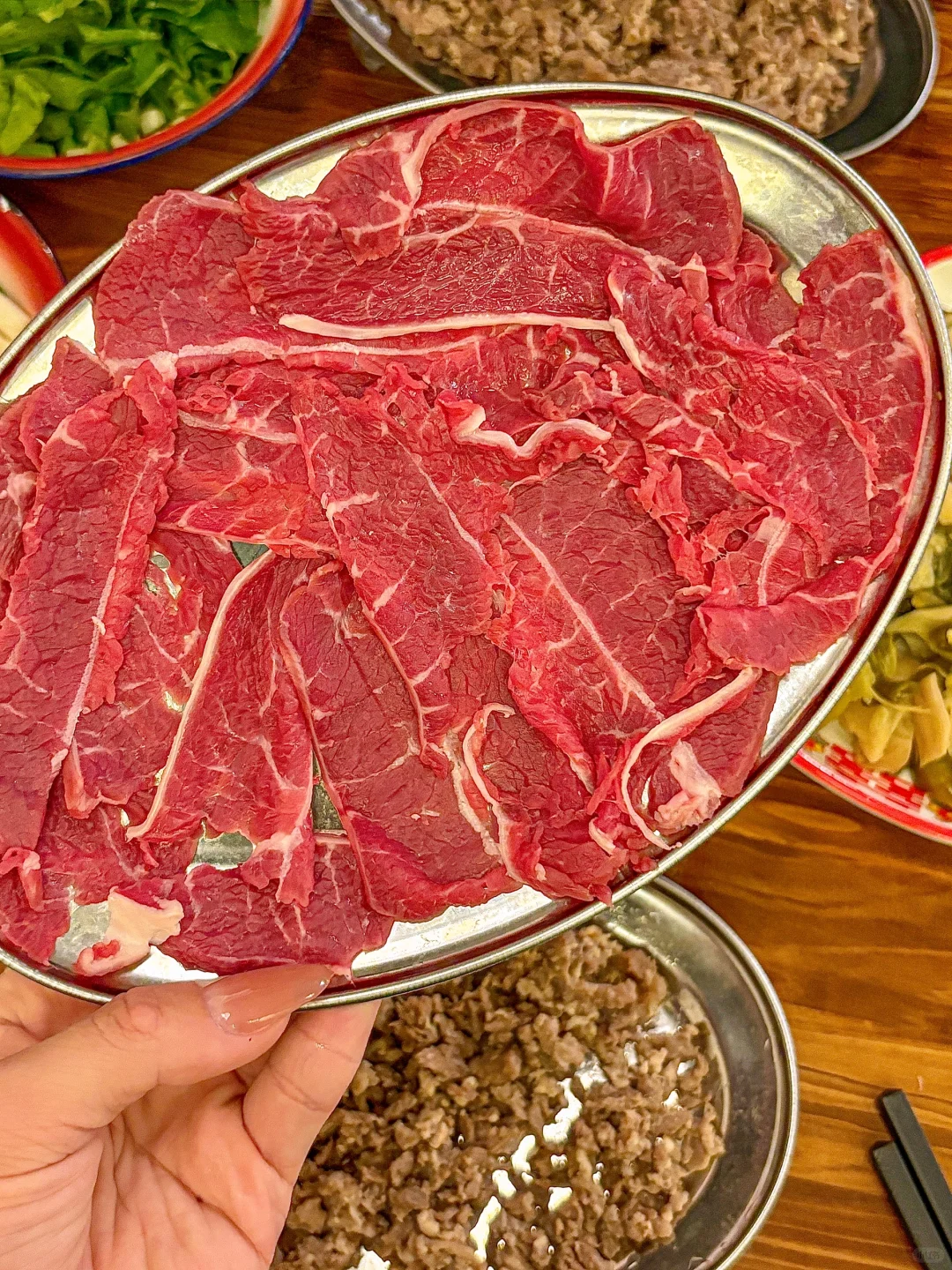 🌟能吃辣的无脑选麻辣,不然选金汤酸口微辣也不错!刚端上来的锅底香味十足倒入酸菜香菜牛肉一起焖煮真的还没吃就开始流口水了🤤