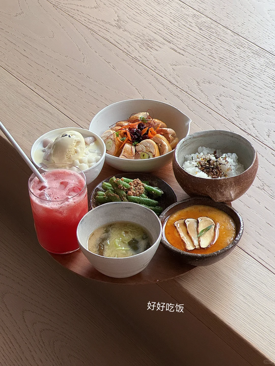 - 食堂今日菜单📝 大葱鸡肉卷🍗🌯 松茸炖蛋🍄🟫 昆布味增汤🫕 芝麻盐拌豆角🫛 芋圆冰激凌🍨 西瓜汁🍉(终于消耗完了)