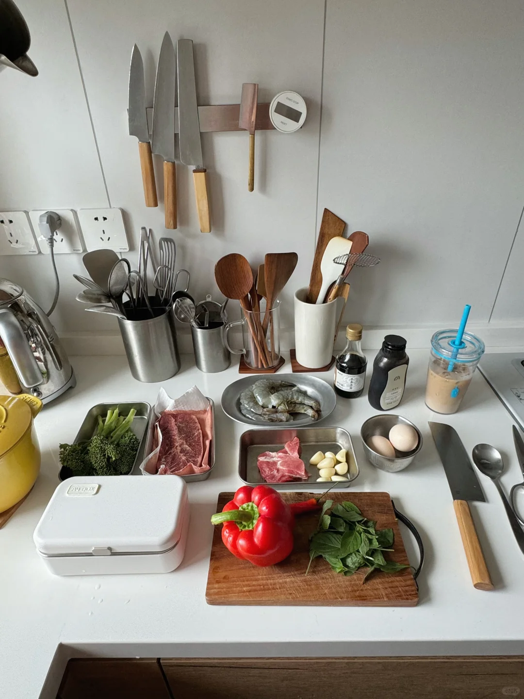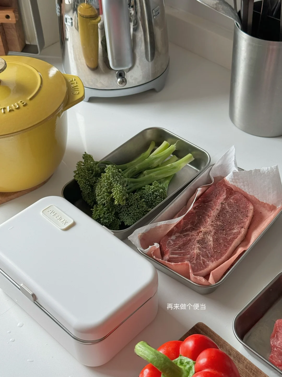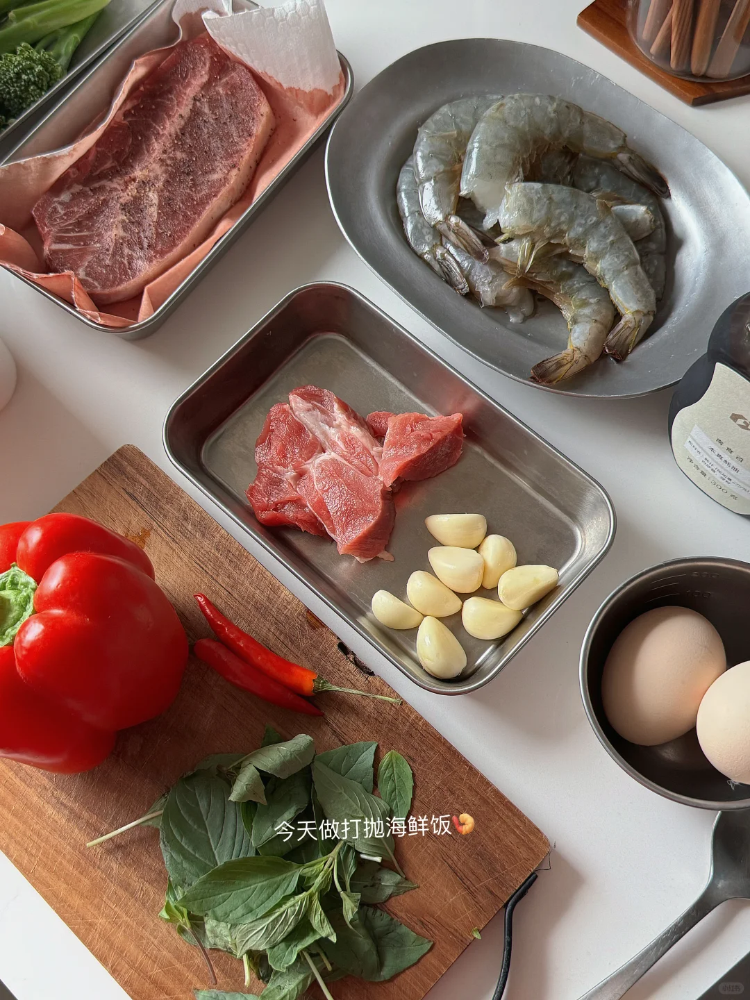 - 中午食堂菜单📝 打抛海鲜饭🍤 白灼菜心🥬 荷包蛋🍳 冻柠茶🍋🥤 - 下午去健身 怕堵车回家饿个半s 顺便做了份便当带着 练完就炫! 板腱牛排🥩西蓝花🥦糖心蛋🥚 最近好喜欢蓝瓶家的杯子啊啊啊! 好好健身 好好吃饭 周末愉快😋