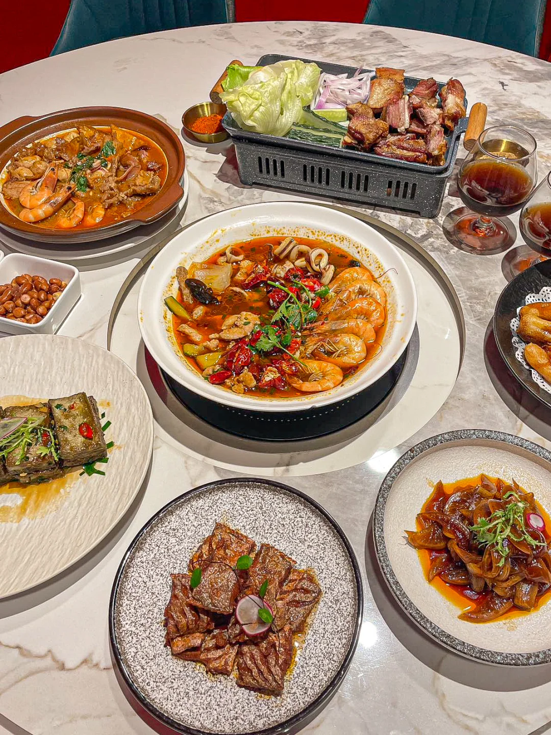 碳烤羊排,香到舔手指;冰镇三拼,清爽不单调;沙茶一品锅,味浓料足,直呼过瘾!不去试试是你的羊排没被烤好哦~?