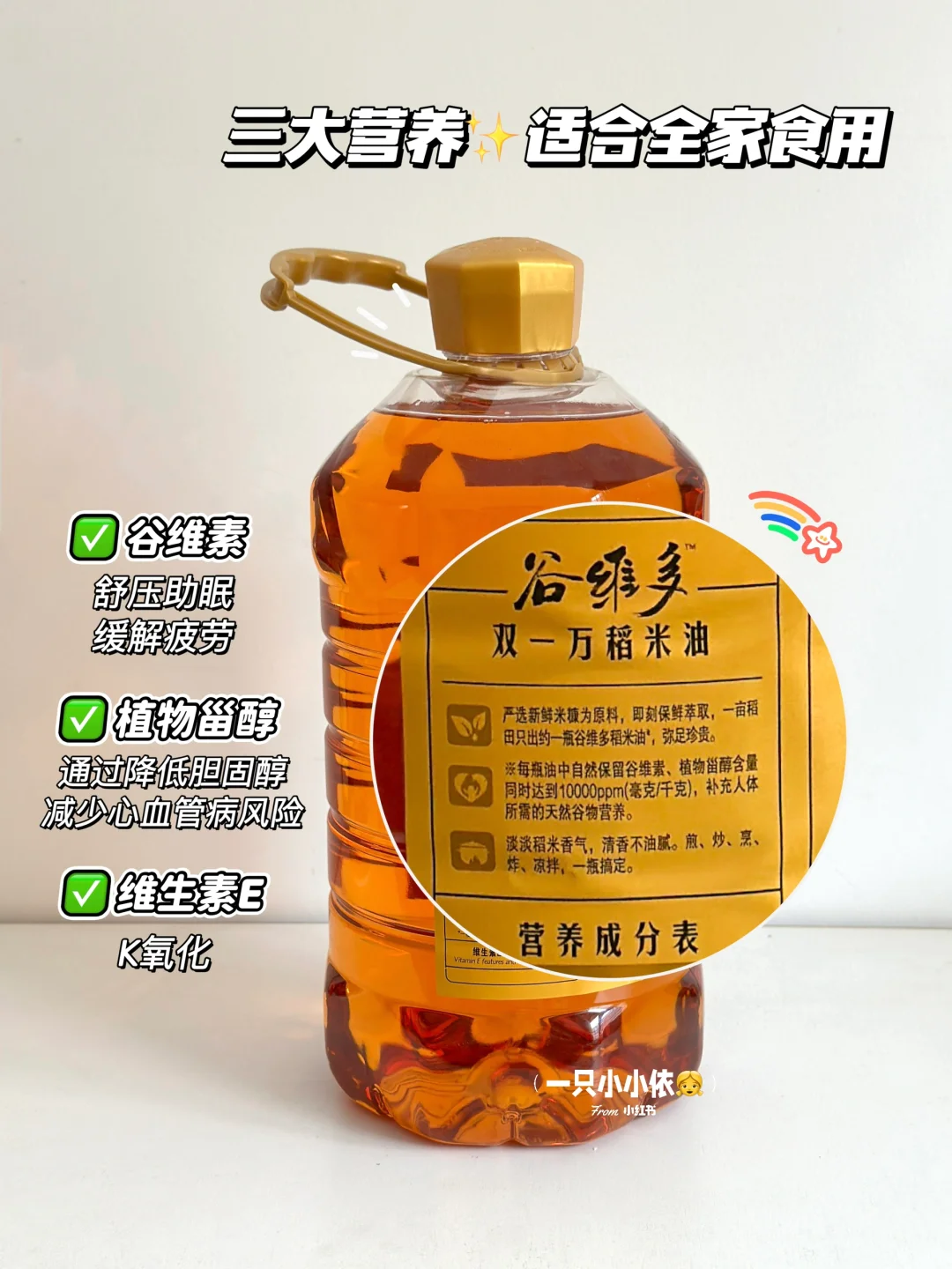🌈还含有植物甾醇和维生素E,值得一提的是她的谷维素和植物甾醇含量做到了双一万☝️做了功课才知道这些营养成分可不是越多越好,只有在合适的范围内,对于人体吸收才更好!可以满足宝宝日常营养所需~