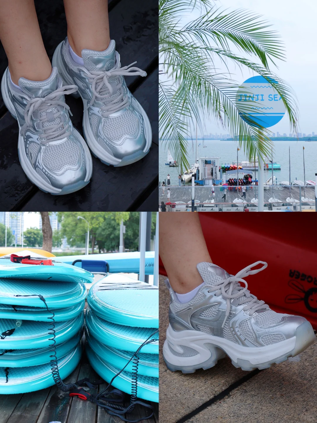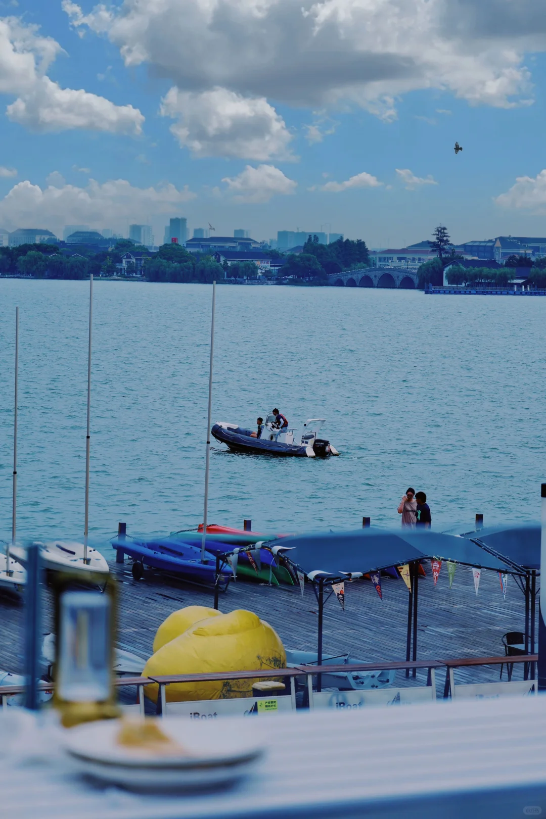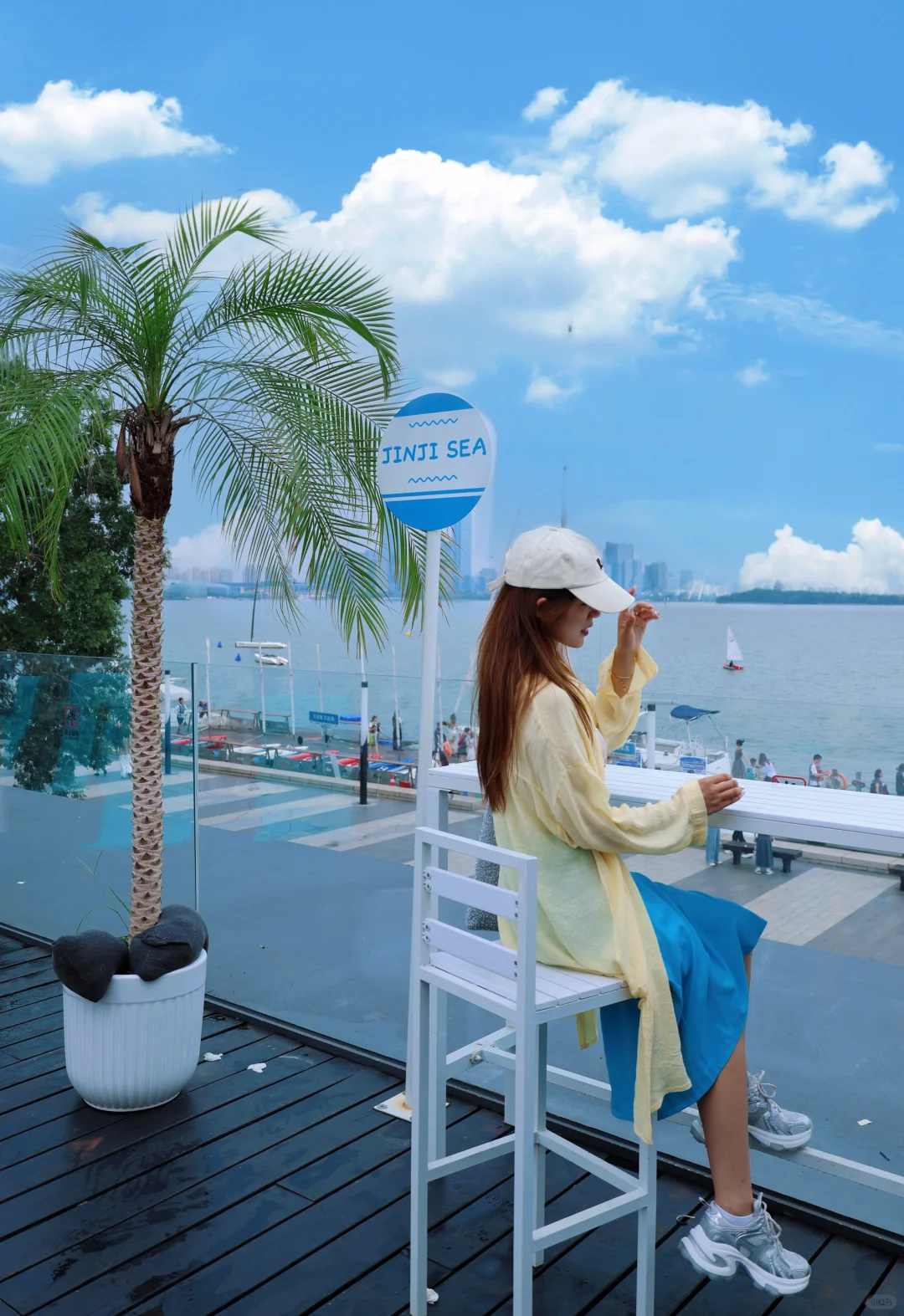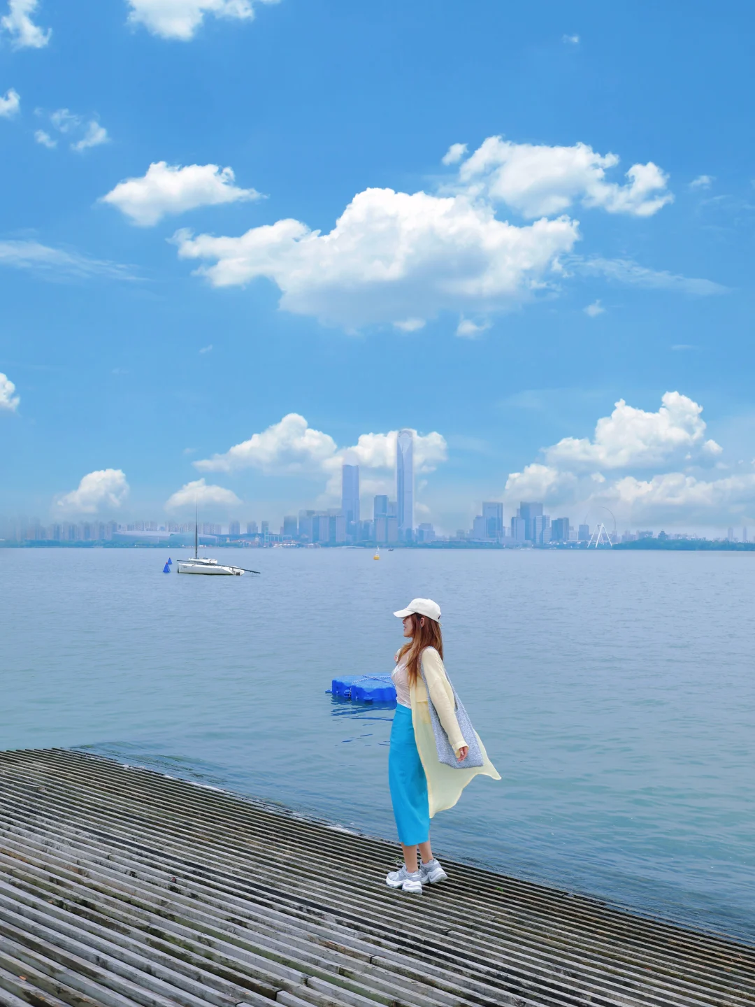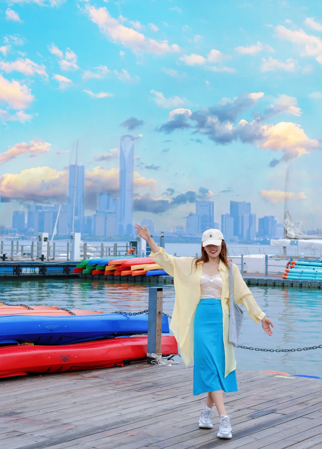苏州你变了! 已经不是我认知里的样子了[萌萌哒R] - 谁能想到[赞R]水上户外运动在苏州也可以轻松实现了! 金鸡湖新开的风之驿太出片了,📷 椰子树,蓝色路牌,无痛到达济州岛哈哈哈 - 水上项目有很多🧼 皮划艇,游船🚣,快艇,出海🌊变成日常项目啦~ - 今日OOTD: 🧥:淡黄衬衫(防晒又休闲)➕湖蓝半裙👗 (这种浅色系和海边真的很搭!) 👟:苏茵茵老爹鞋 (增高7.5cm,拉长腿部比例,旅游暴走也不累)