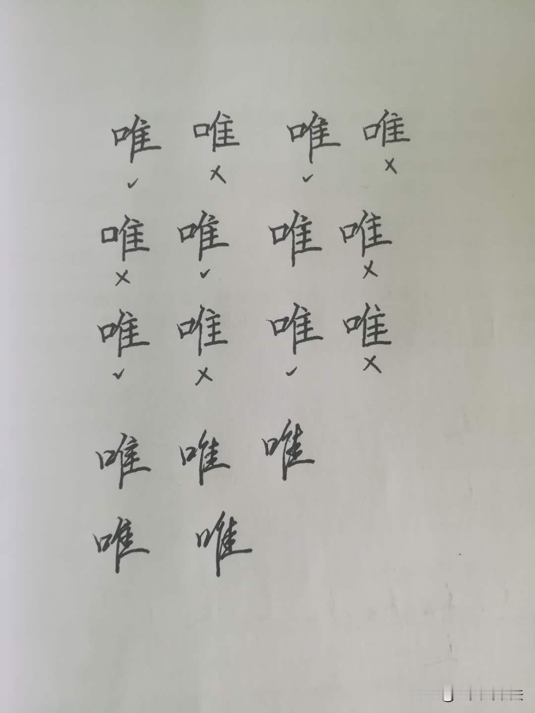 不要写成打错号的样子!怎么才能写好字,必须把字的“主笔”写出来,参考完整视频课程“怎么找出并写出字的主笔”,在主页点击“专栏”查看该课程总目录。