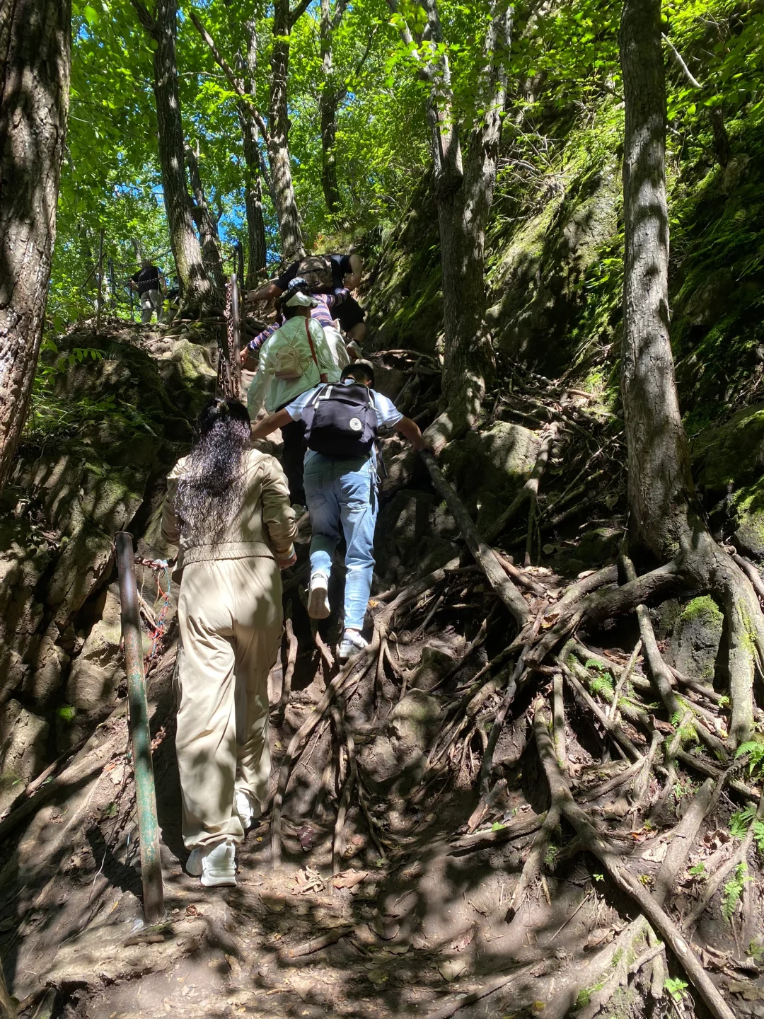 距离哈尔滨大概90公里,但需要驾车2个小时,因为一大部分是盘山路,路况不熟太好,这里没有什么历史文化,纯纯的风景区,和人为娱乐、空气很棒,大山里环境好,负氧离子高,一进景区有电瓶车,如果体力好的朋友可以不坐,先是走一大片比较缓的路,中间爬山有点陡,图8直上直下的那部分铁链看着太悬了,我没上去,然后其中坐了一段魔毯,下来的时候坐了单人索道和大理石滑道,和漂流下来,总之一路上来和下去,能使用交通工具的我们都使用了,对于平时没有锻炼的朋友们来说,还是挺辛苦的