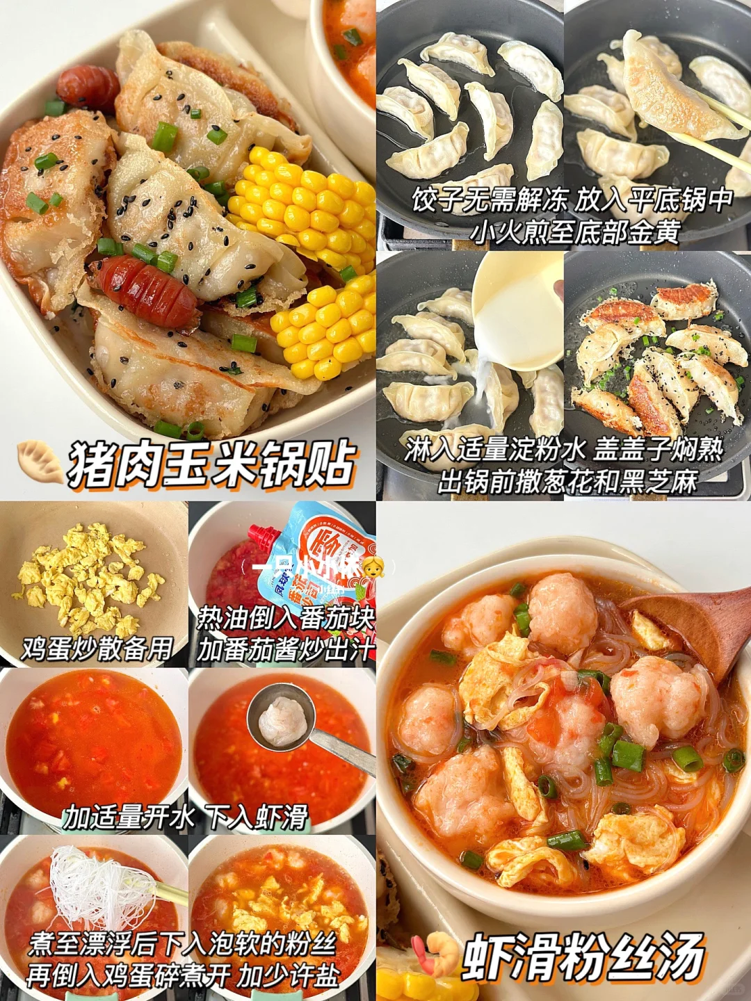 DAY 5⃣️:猪肉玉米锅贴+虾滑粉丝汤