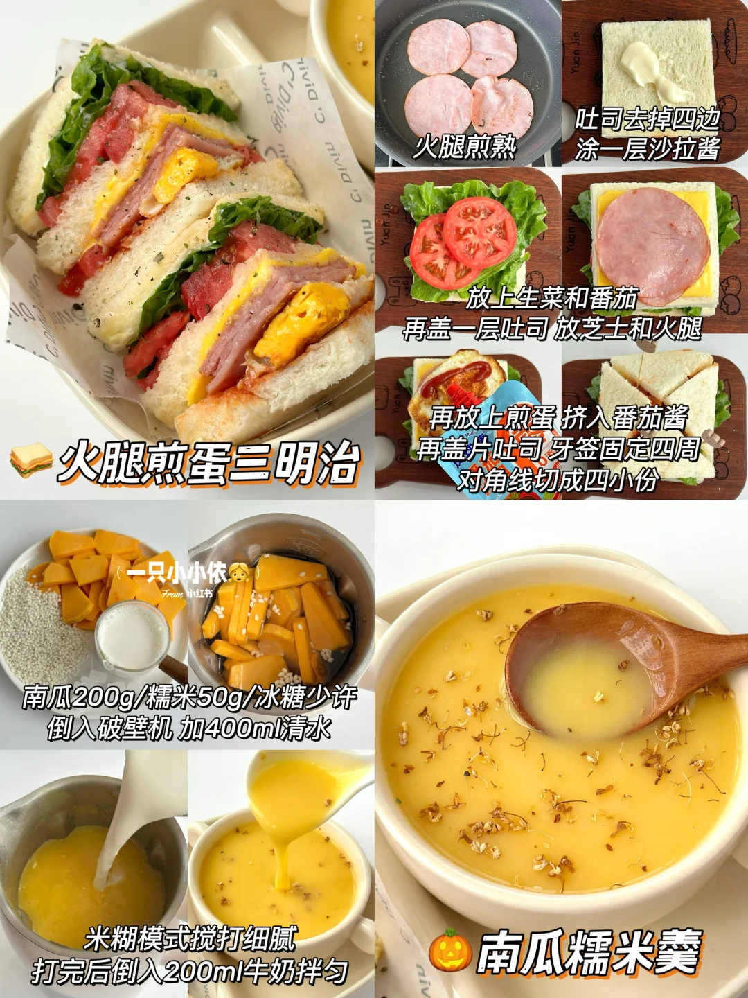 DAY 2⃣️:火腿煎蛋三明治+南瓜糯米羹