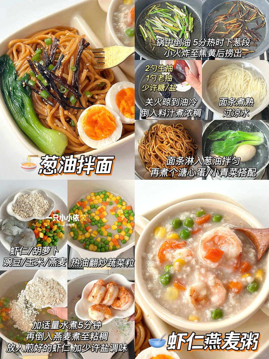 DAY 4⃣️:葱油拌面+虾仁燕麦粥