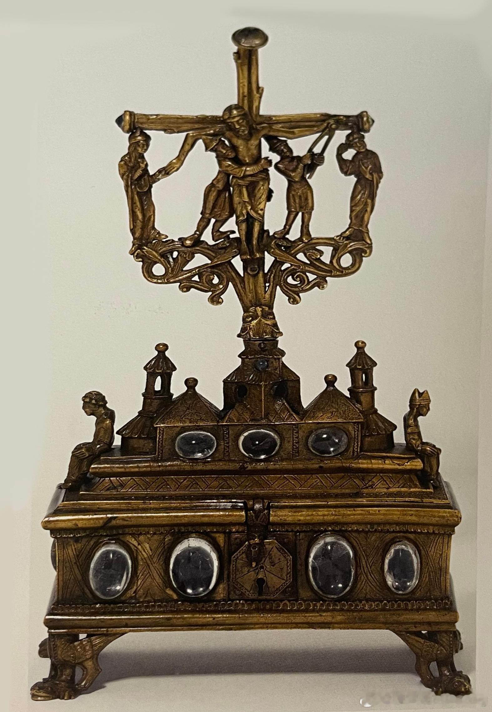 图2.卸下圣体的十字架基座,约1150年,铜、浇铸、雕刻、镂刻、镀金、水晶石,高43.2厘米,伦敦,维多利亚与阿尔伯特博物馆