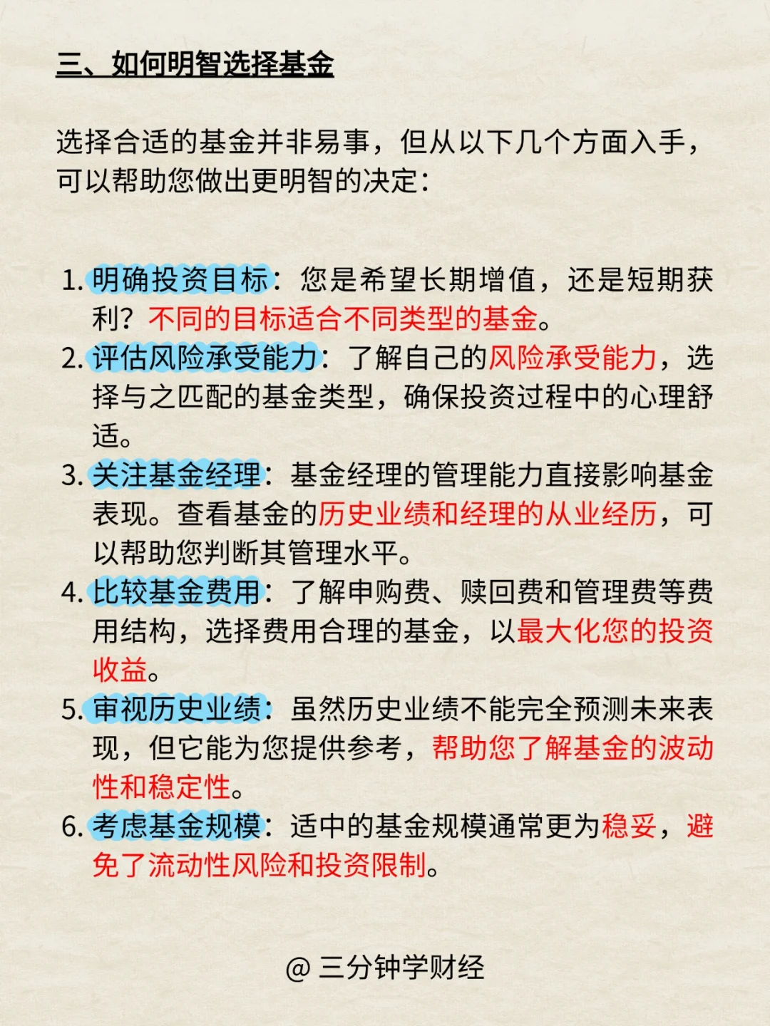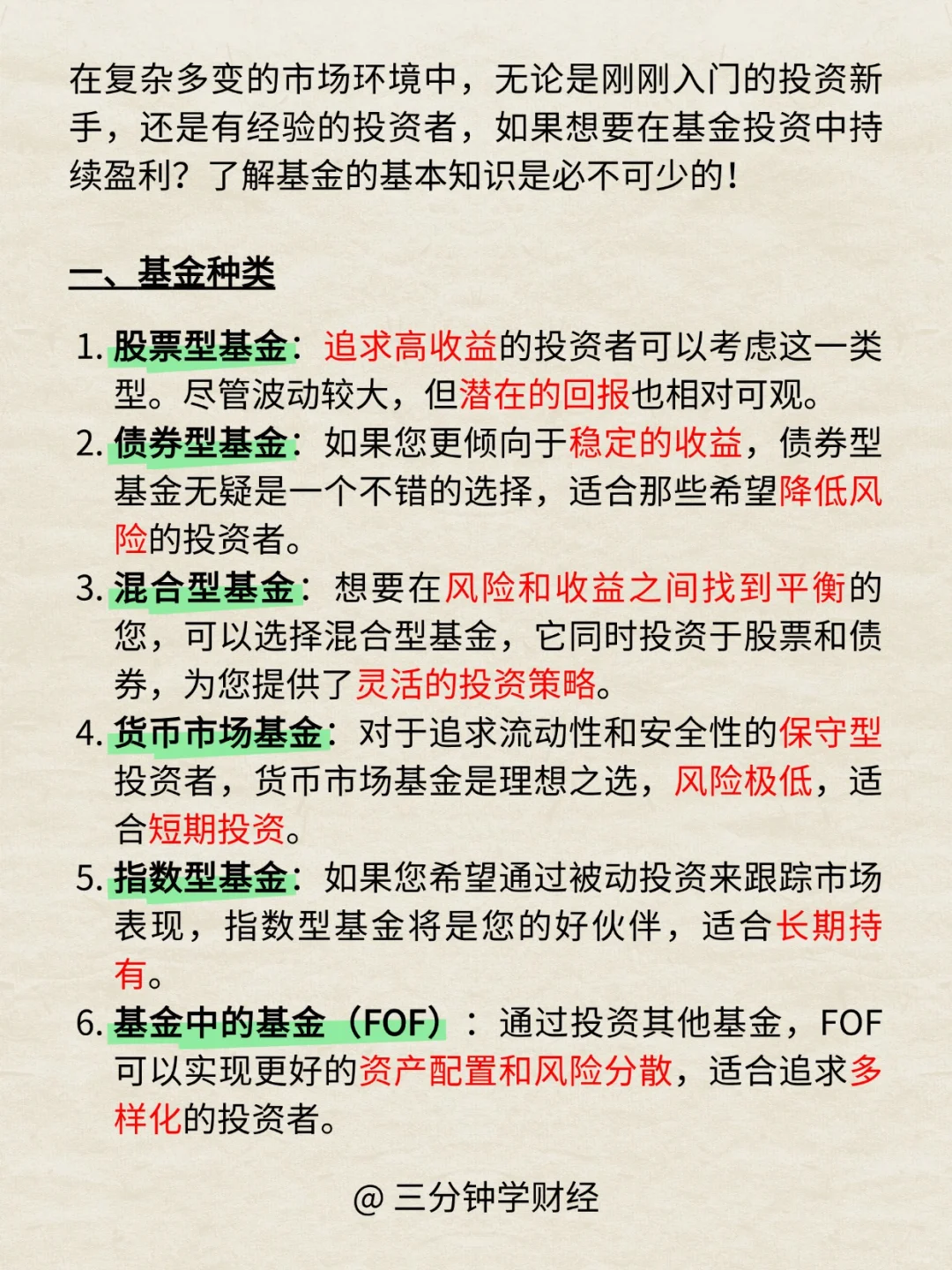 投资基金是一项需要耐心和细致分析的工作。通过了解基金的类型、交易时间、选择标准和赚钱方式,您将能够做出更明智的投资决策,有问题欢迎留言讨论。
