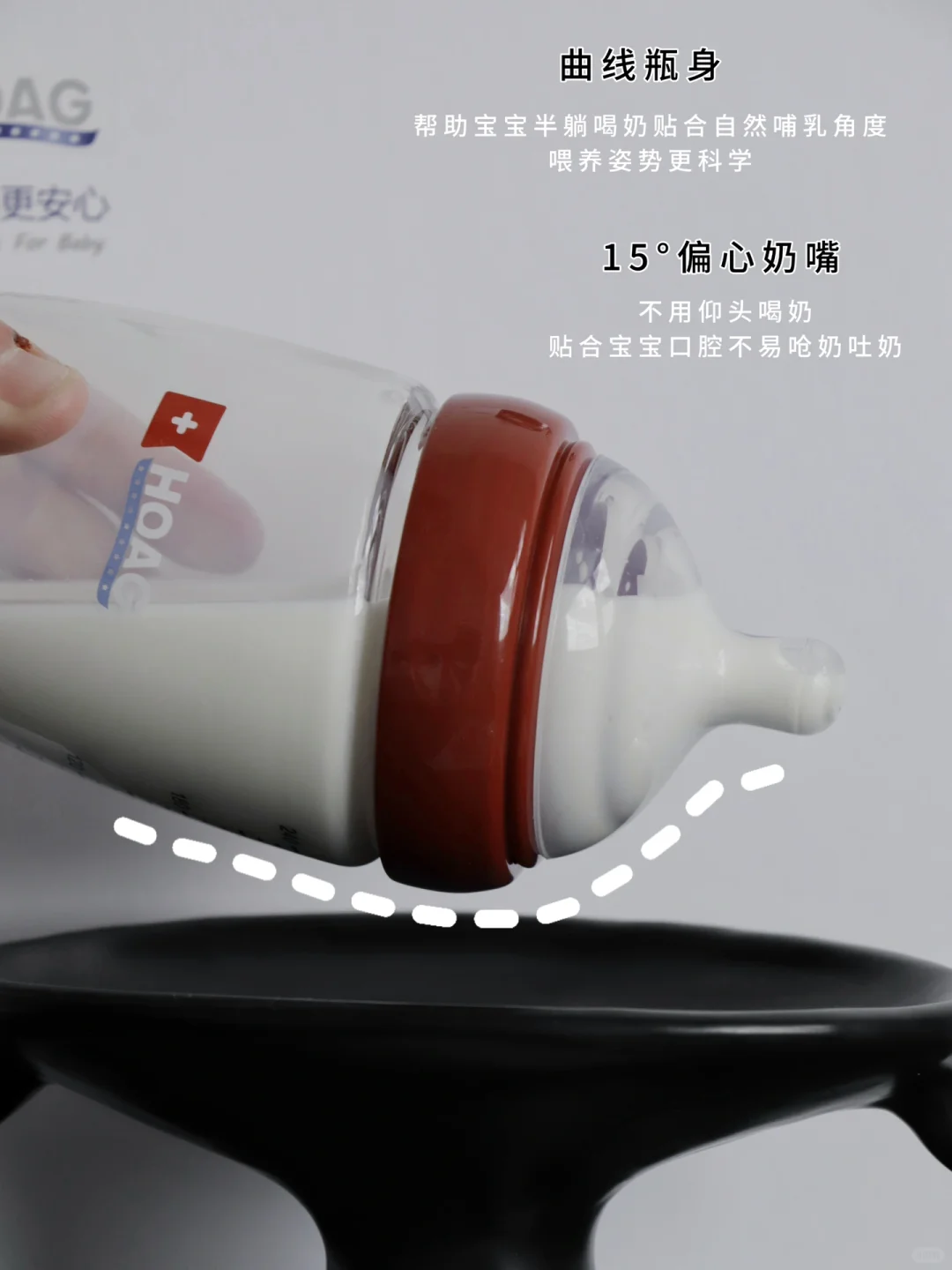 独特的曲线瓶身+15°偏心奶嘴设计真的太贴心啦