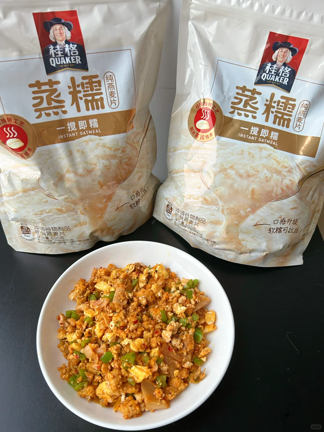 最近解锁了燕麦的新吃法 一直吃甜口的吃腻了 刚好入手了桂格首款糯燕麦-桂格蒸糯即食糯燕麦片 今天用它来制作一个超级香的无米糯燕麦炒饭! 做法也特别简单! 📝准备食材和做法如图 真的简单又好吃!特别适合中国胃的姐妹!富含膳食纤维,对噗噗困难人群友好~而且很轻卡,比普通炒大米饭热量要少些! 而且配方特别干净,富含膳食纤维,对肠道健康很友好,很适合身材管理期的姐妹!这个糯燕麦不会让你失望的🤩