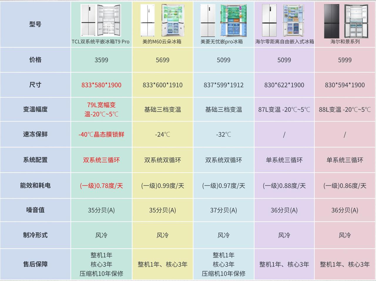 央妈再度发声,110亿元“真金白银”支持“以旧换新”补贴加码 就在最近,国家发改委召开新闻发布会,简单总结了本轮以旧换新的成效。在车这方面,已通过审核的以旧换新补贴金额合计接近110亿元。 家电、家居家装这方面的也有明显增长。4至8月份期间,冰箱、电视机等家电零售业规模和销售收入同比增长2.4%和5%,分别对比3月份提高2.8%和11.6%。家具、卫生洁具也有增长。 这次以旧换新福利补贴多,甚至不用换旧都能享受折扣补贴,用薅羊毛形容都不够,都快赶上空手套白狼了,因此无论是换新还是年轻人独居第一次买家电最好不要错过。 不过目前家电产品多,大家不知道如何选,正好有朋友私信说最近想换冰箱,这里就筛选了5款好评较高的冰箱给大家参考,下方有图也可以快速阅览。 海尔和景(5999元)、海尔零距离(5099元) 嵌入式十字门设计,厚度分别是59.4cm、62.2cm,能耗分别是0.86度/天、0.88度/天,另外和景有一定除菌功能,其他也强于零距离,价格高了900元。不过二者都是单系统,上下共用一台蒸发器,冷气容易混杂,防串味是弱项。 TCL双系统平嵌冰箱T9 Pro(3599元) 防串味非常到位。因为它是双系统,上下各有一台蒸发器让冷源不共用,冷气隔断,源头上防串味。另外还有三循环,冷藏、冷冻、温区都有专属循环风道,冷气不乱跑,防串味更强。 而且它还在冷藏室与冷冻室分别搭载多点离子杀菌技术和T-fresh冷抑菌技术,主动杀灭细菌病毒,还能去除异味,解决同舱室食物串味的问题。 58cm厚度嵌入标准橱柜也轻轻松松。能耗0.78度/天,非常省,核算下来一个月才花了一顿外卖的钱。下半的宽幅变温室和搭载-40℃晶态膜锁鲜技术的冷冻室,也能轻松储存多种食物。 美菱无忧嵌Pro(5099元)、美的M60云朵(5699元) 厚度分别是59.9cm、60cm,能耗则是0.97度/天、0.99度/天。美菱还有AI云保湿和-32度深冷速冻功能,美的噪音小些。另外这两款冰箱都是双系统+双循环,防串味的基础还是做到位了,不过比起双系统三循环还是要弱些。 总的来看,如果对串味敏感,尤其是年轻人,可以优先考虑TCL T9 Pro,而且质价比也高,不过选东西还是看个人,这里仅做推荐。如果大家对换新话题感兴趣,下回也可以针对空调做个推荐。
