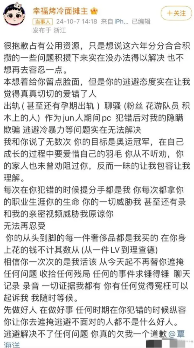 覃的未婚妻自己望男主持肩膀上,有照片,她说覃和她人骚聊,她怎么知道?!给覃编造吧!这种女人真可怕,别说未婚妻,就是结婚后不合适还可以离婚呢,不行就毁别人名声的女人,真可怕!早就应该和她分开!