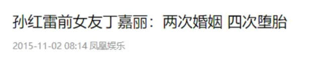 主要信源:(凤凰娱乐——孙红雷前女友丁嘉丽:两次婚姻 四次堕胎)