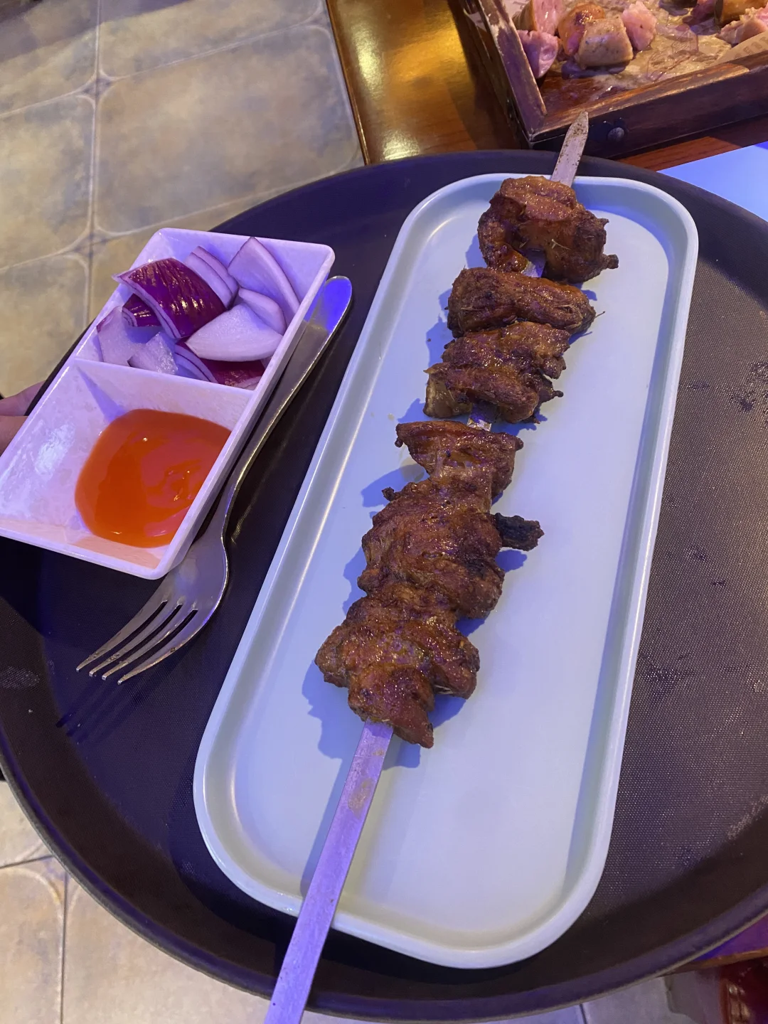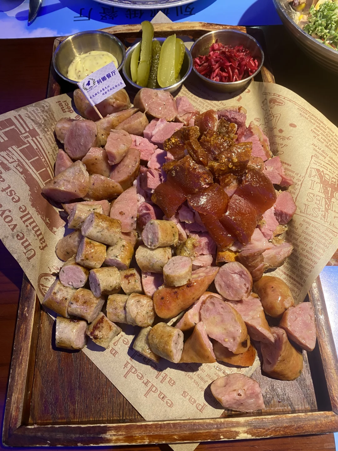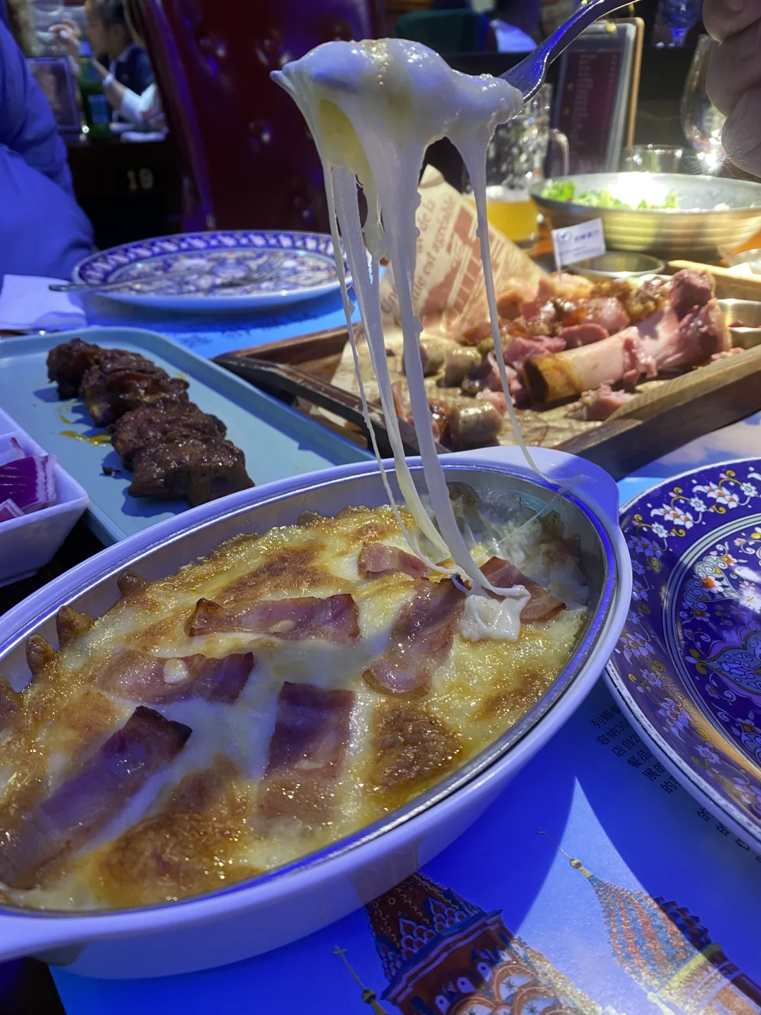 [草莓R]晚上我们选择吃的列娜,这是一家以烧烤为主的俄餐,我们晚上想喝点啤酒,特别推荐这个烤肠,虽然看起来是一道简单的烤肠,但这家列娜做的烤肠巨香,导致我回来一直想念这个烤肠,大串不推荐点,干巴,又硬,没特色,芝士烤土豆很好吃,芝士放的很厚重,浓郁醇厚