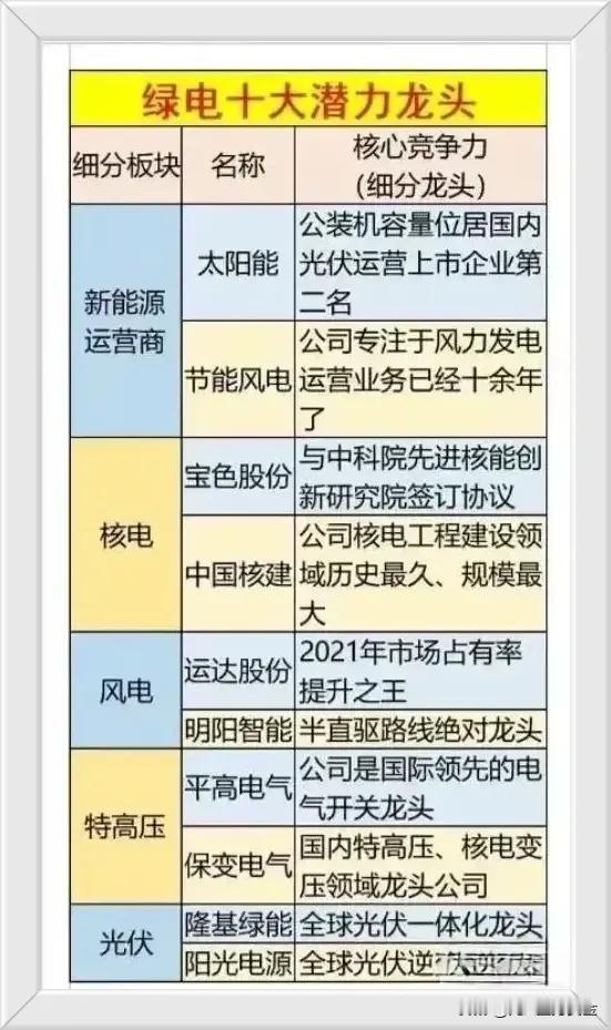 绿色电力概念,本周主力资金强势流入的17强个股! 序 股票代码 股票名称 5日主力净流入 最高价 最低价 1 600027 华电国际 1.34亿 5.97 5.75 2 600483 福能股份 1.17亿 10.16 9.77 3 002256 兆新股份 9636万 2.38 2.16 4 000877 天山股份 9230万 5.66 5.41 5 600025 华能水电 7356万 10.95 10.45 6 600674 川投能源 5535万 18.48 17.81 7 600395 盘江股份 5097万 5.67 5.4 8 600236 桂冠电力 4712万 6.62 6.43 9 600008 首创环保 4634万 3.21 3.12 10 000899 赣能股份 3818万 8.81 8.37 11 301109 军信股份 2926万 17.04 16.28 12 000883 湖北能源 1070万 5.14 4.97 13 600021 上海电力 491万 9.17 8.85 14 300854 中兰环保 440万 12.76 11.82 15 603071 物产环能 271万 12.49 11.93 16 002062 宏润建设 176万 4 3.81 17 000631 顺发恒业 167万 2.66 2.57
