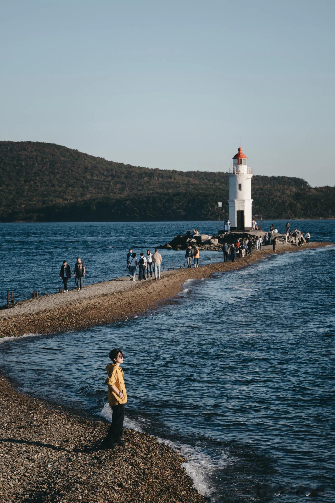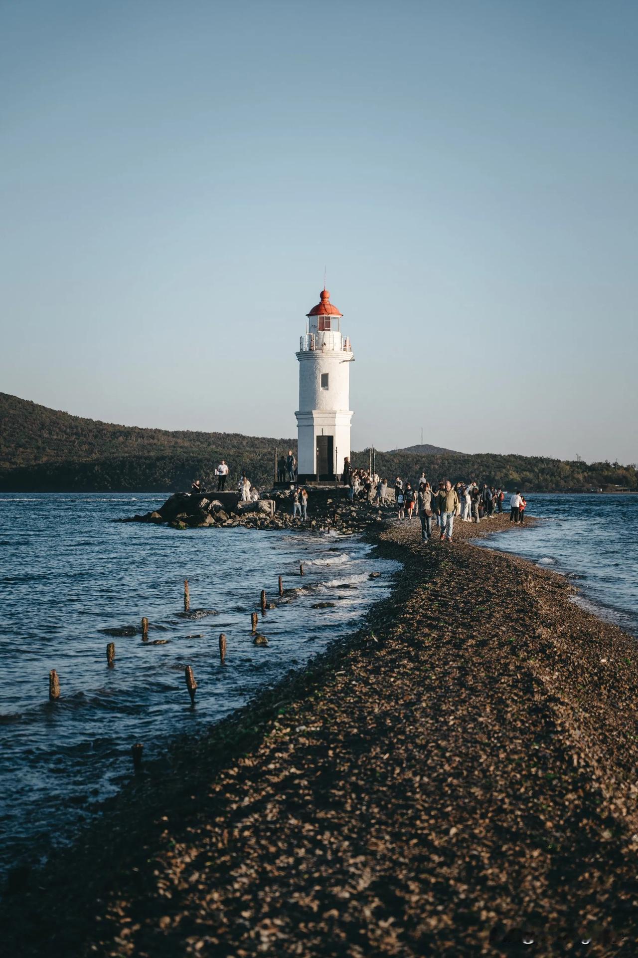 在海参崴的最南端,屹立着一座古老的灯塔👉托卡列夫灯塔,它指引着无数船只安全进出金角湾🌊作为这座城市的重要地标,灯塔不仅承载着百年的海上历史,也成为无数旅人寻找内心宁静的地方,在这里拍照真的绝绝子! 🔹这里是《七月与安生》电影的重要取景地,沿着同样的石子路,仿佛也走进了电影中的世界 🔹建于19世纪末,俄罗斯远东地区最古老的灯塔之一 🔹远远望去可以看到雄伟的俄罗斯大桥! 🔹停车场距离灯塔比较远,需要步行约20分钟左右,但途中你会经过一段风景绝美的海岸线~ 🔹在这片海域,偶尔会有渡轮经过,如果运气好的话,说不定能遇上俄罗斯版的布鲁斯号呢!镜头绝对不会让你失望。 🔹从电力塔到灯塔的石子路非常狭窄,在涨潮时会被海水淹没,所以一定要提前查好潮汐时间,确保安全。 🔹如果时间充裕,建议等到日落时分再离开。海岸边的靠椅非常适合坐下来欣赏夕阳 📍符拉迪沃斯托克-托卡列夫灯塔 浪漫海参崴 海参崴之约