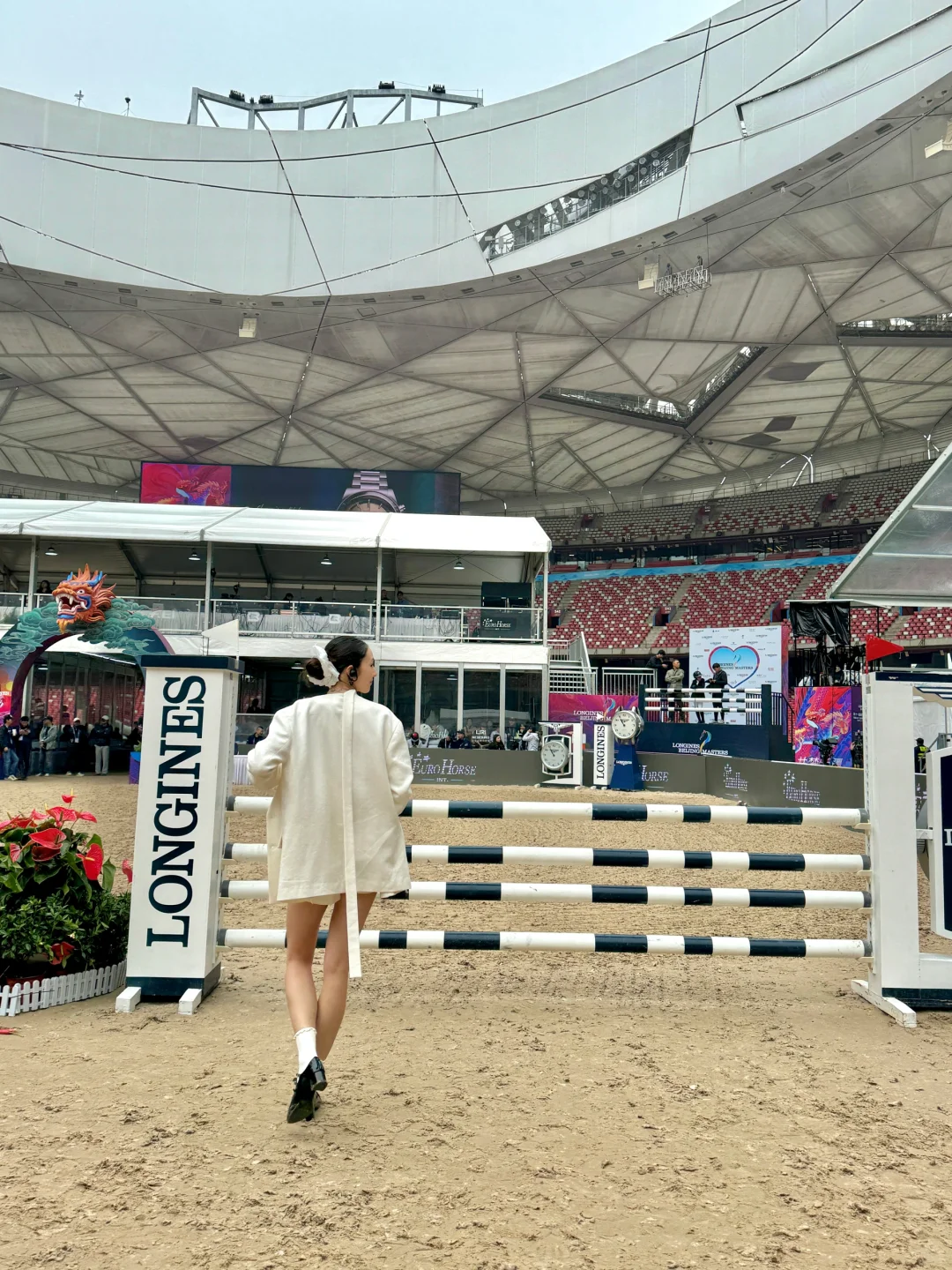 非感谢浪琴的邀请,到鸟巢看了北京国际马术大师赛!🐎 我在法国学了7年的马术,居然一次也没看上马术大赛,所以能看这样一场表演实在太开心了!🤩 场地布置的非常精致,选手们又飒又优雅! ———