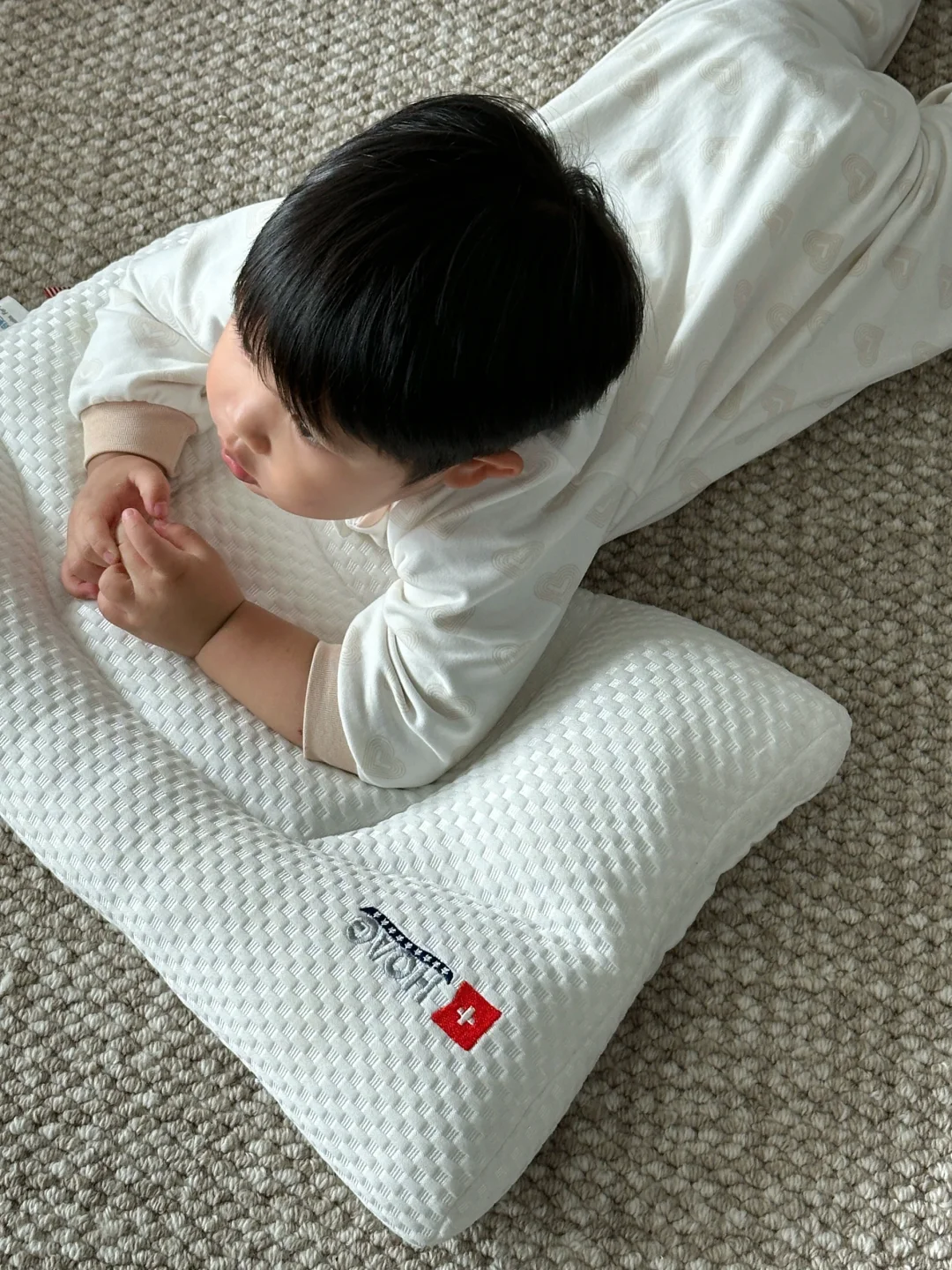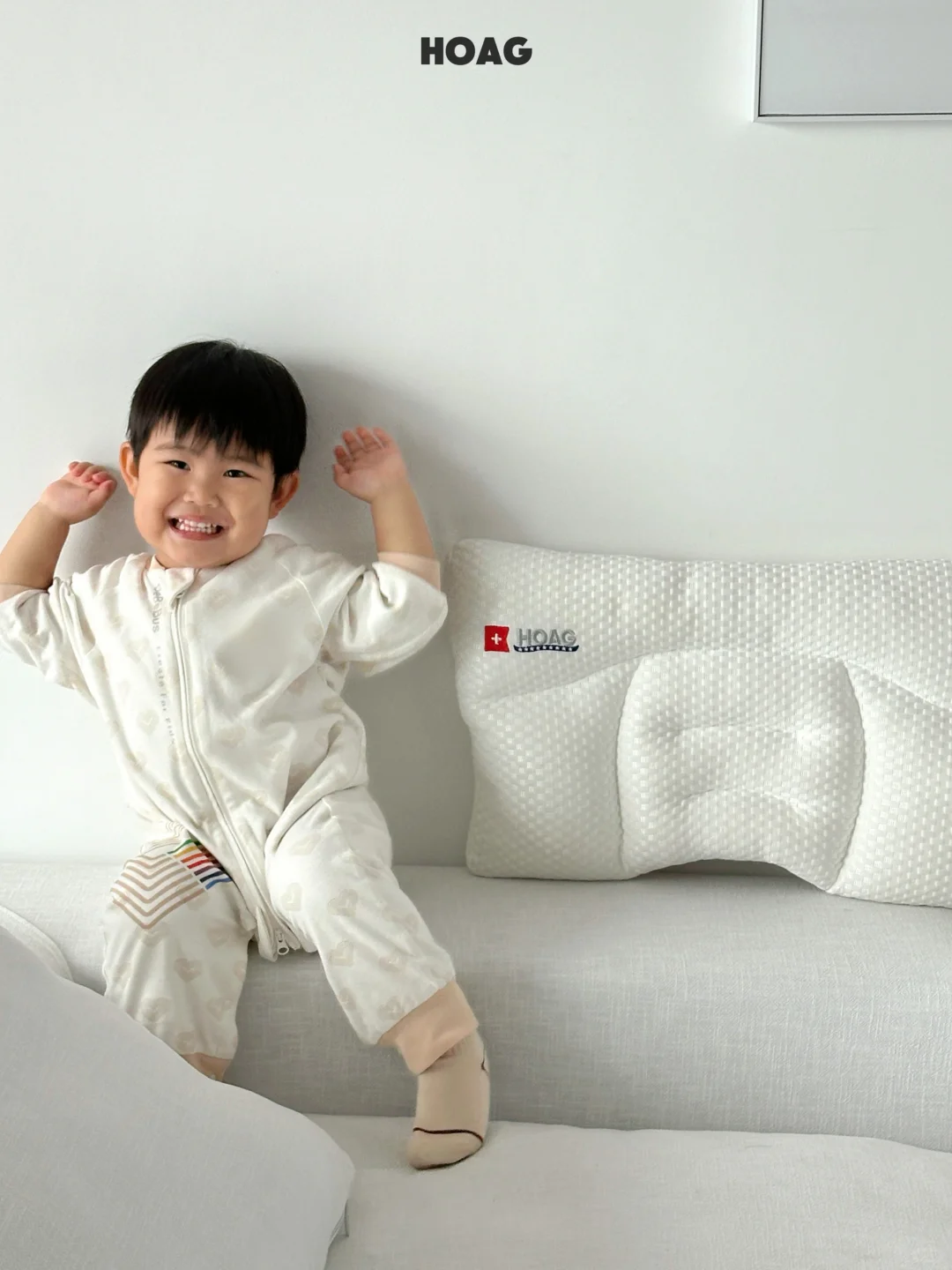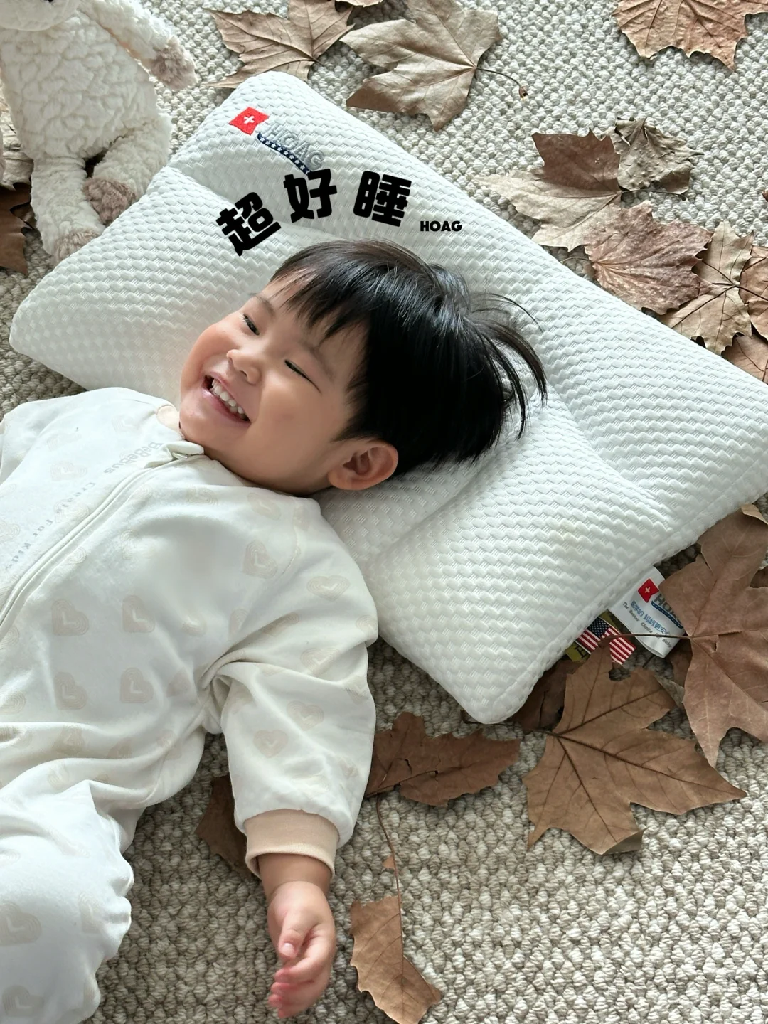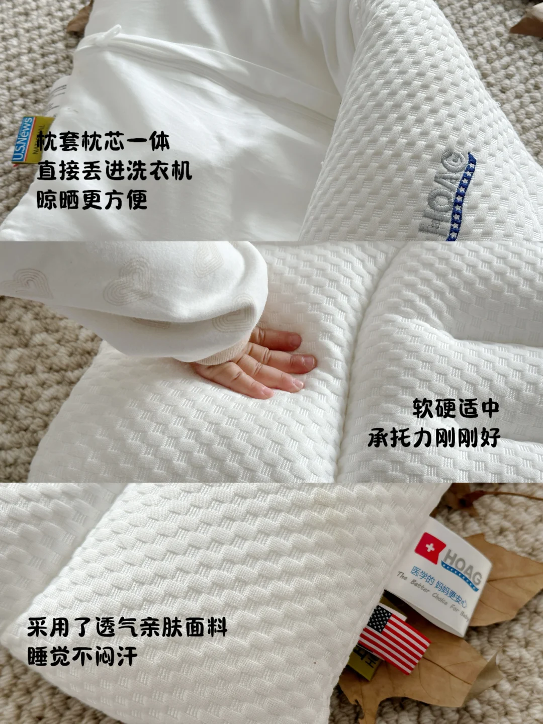 宝宝秋季的第一个小枕头 终于安排到位啦~ 我选择的是霍格 HOAG 它们家的分段护脊枕 刚好适合多多这个年龄用 宝宝随着年龄的增长 会越来越追求睡眠质量 从他 10 个月的时候 他晚上就总是喜欢枕着我们膀子睡时 我就知道是时候安排小枕头了 - 霍格 HOAG 分段护脊枕最大的优势是 它有四个填充口,还送了两袋珍珠棉 可以根据宝宝年龄身高增长 更精细的采用珍珠棉去进行高度的调节~ 真的很贴心 而且它有五大科学睡眠分区 每一个分区真的是各司其职 每一块对宝宝的颈椎,头部都有很有利的支撑 很好的贴合了宝宝的脊椎生长曲线 - 它的面料也是升级采用了 杜邦纤维,兰精天丝和珍珠棉 透气性好的同时宝宝小脸蛋睡在上面 也非常的舒服亲肤~ 全身都可以机洗,也不容易变形塌陷 这个小枕头真的是太懂事啦!