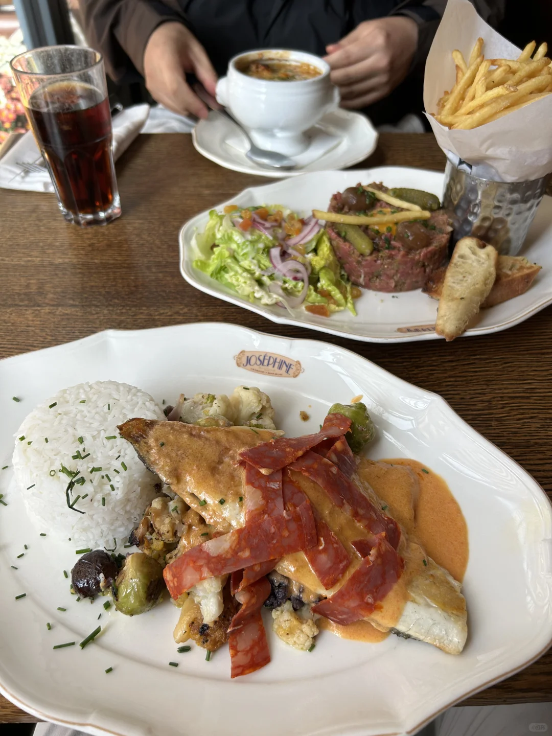 🥣霞慕尼吃什么:家属的瑞士同事推荐的Josephine Restaurant,我的这道忘记名字的鱼肉真的太好吃了,牛肉塔塔也推荐