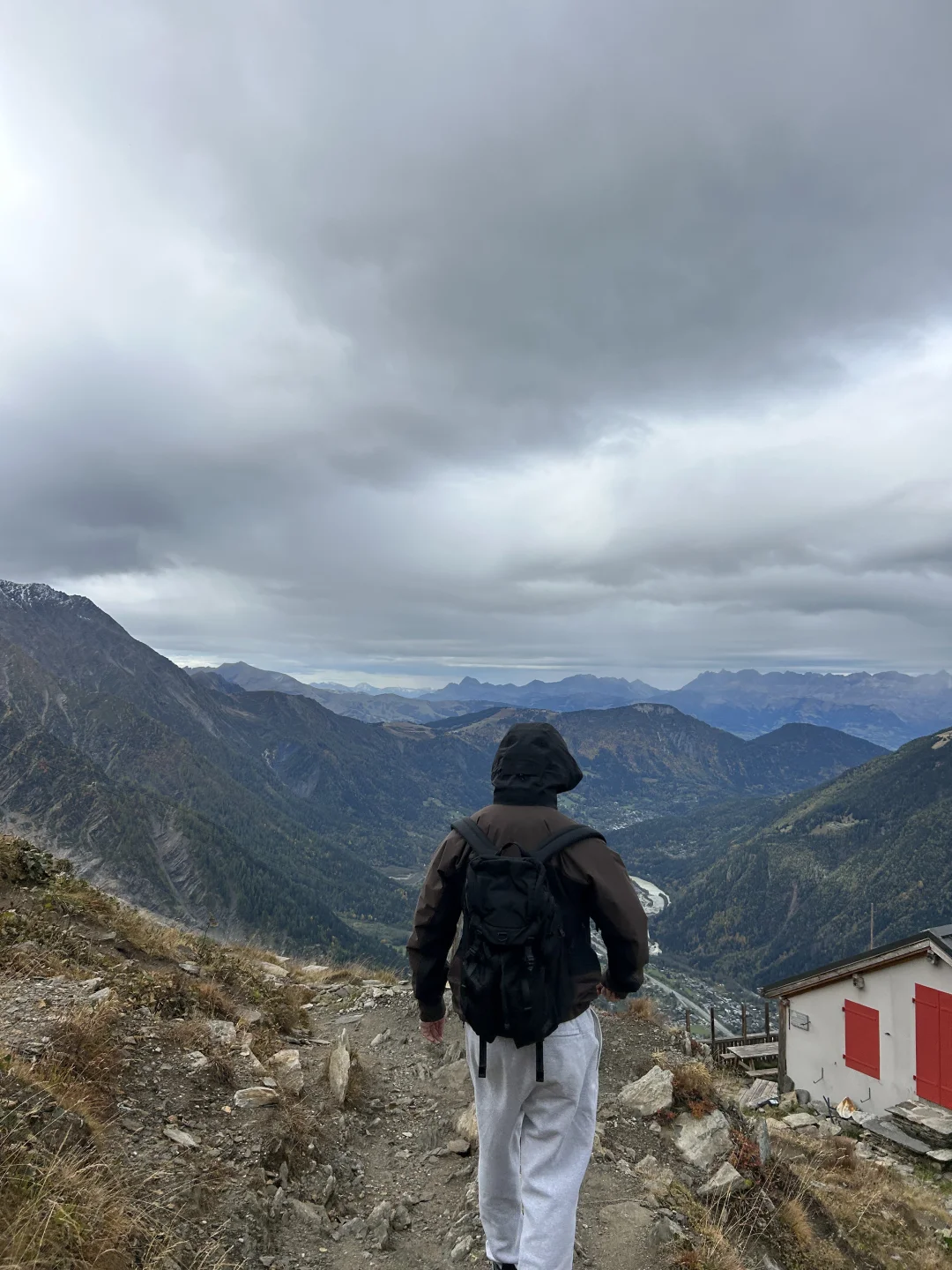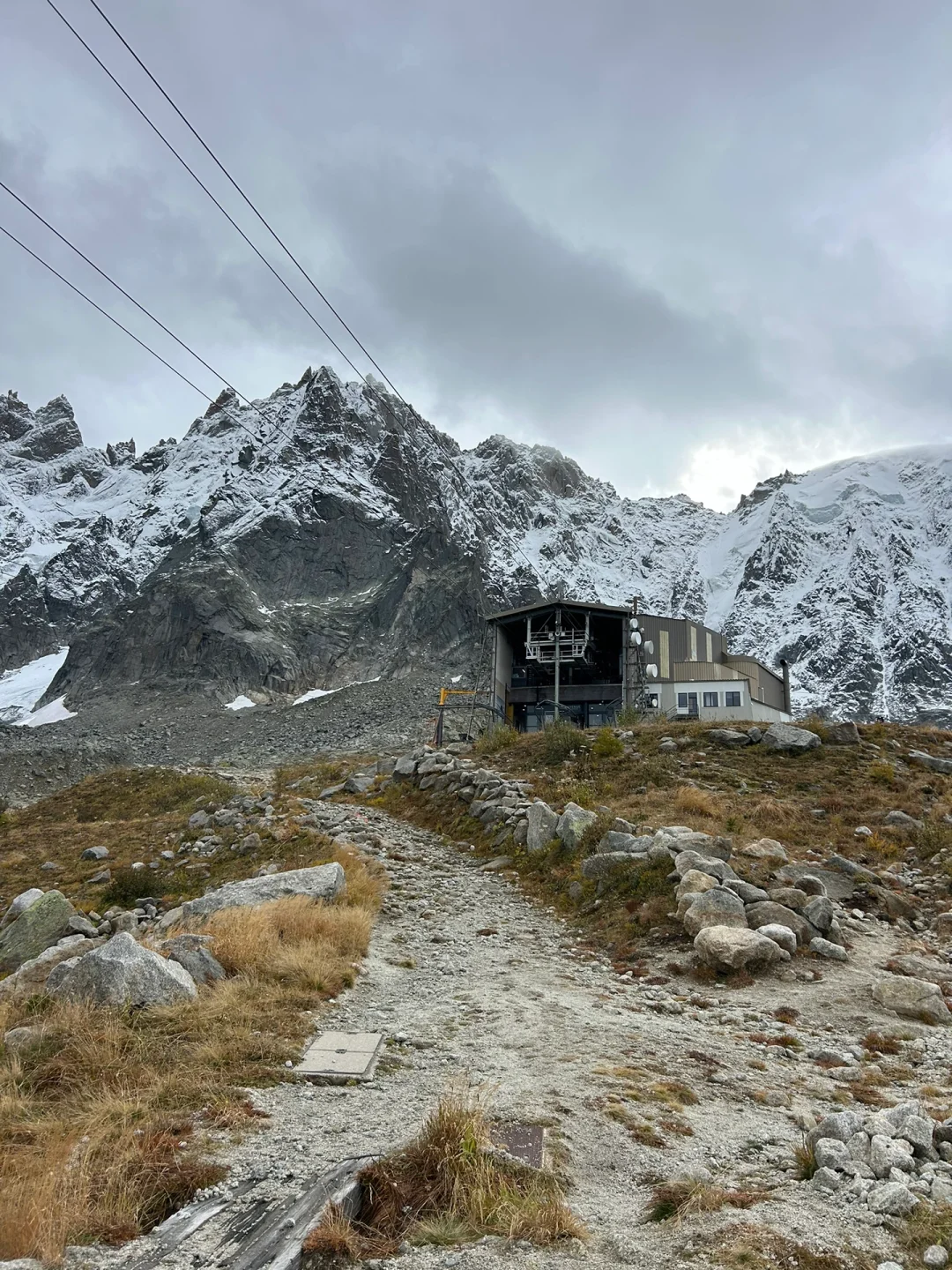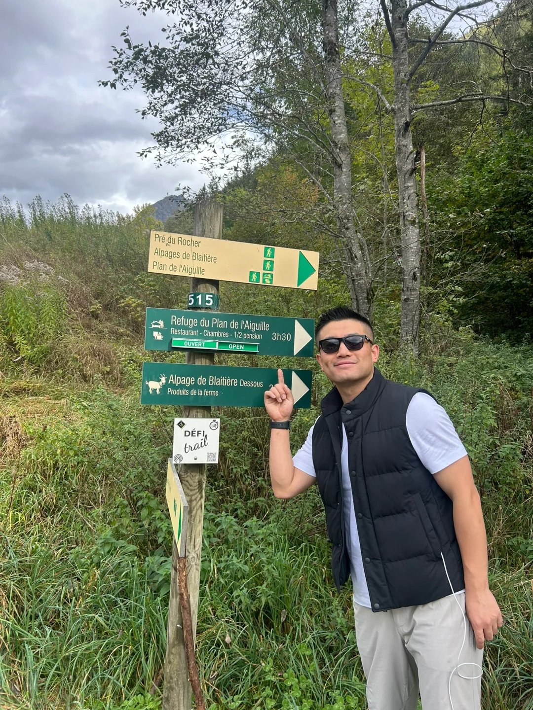 图6️⃣:如果只是坐缆车那就太无聊了,有趣的经历就在这里!我们从第一段缆车到达点出发,沿着山路下行,徒步霞慕尼是我们的计划之外的特别体验