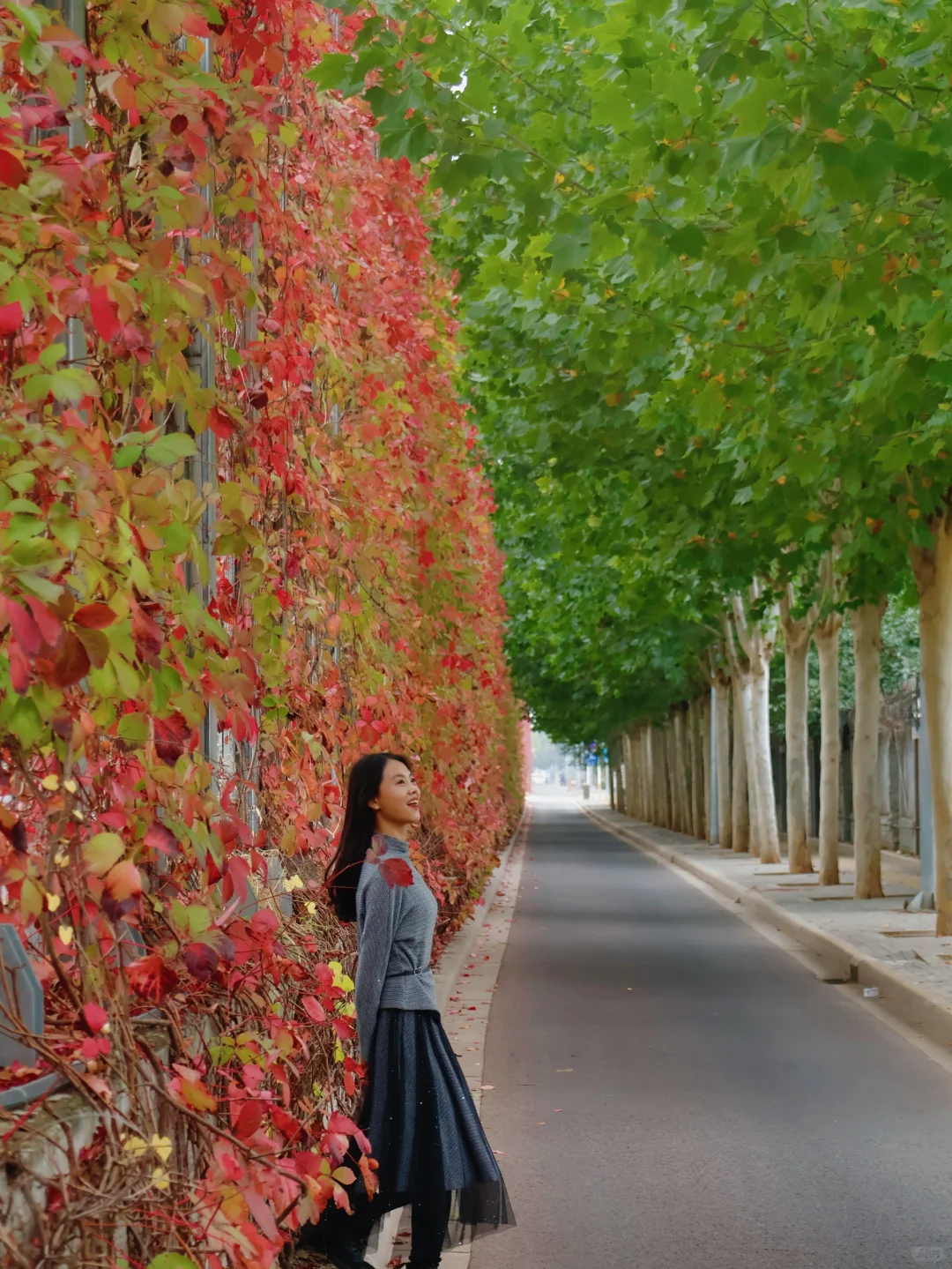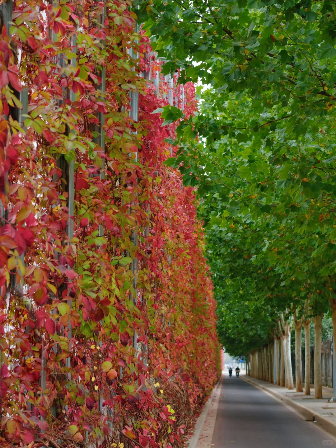 🍁🍃今天下班的时候偶然发现了一大片红叶墙🍁 红绿交织,真的绝绝子!🌳💚 现在正是红叶到达高潮的时候 预计还能维持一周呢🍂🍁 那片红火的叶子和蓝天简直就是天作之合🔥🍁✨ 📍地点:西环北路 西环北路和天宝南街交叉口🗺️ 在这段人行路段,可以在人行道上安全地捕捉秋天📸🚶♀️ 赶紧去捕捉这秋天的影像诗吧!💫💭