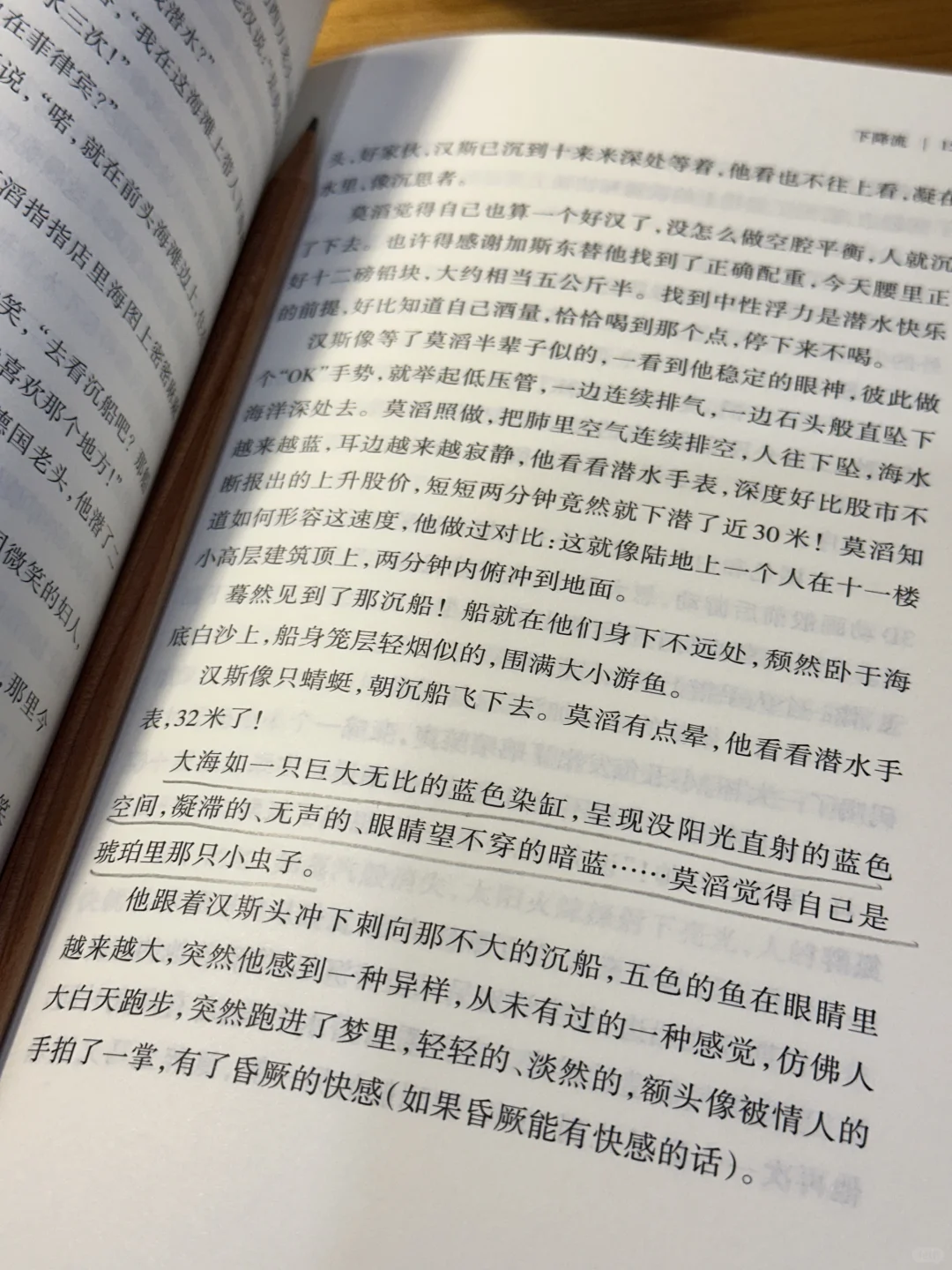 “海里没有人的同类,人潜下去,只是看看,什么关系也不会发生,没有恨也没有爱。”