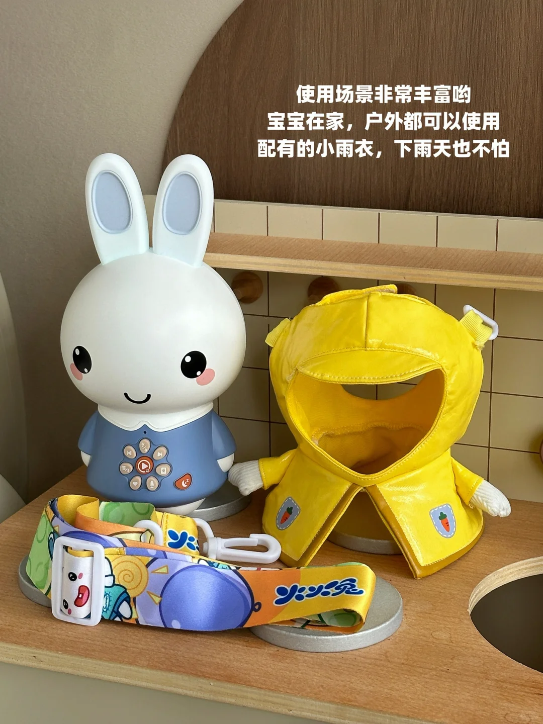 多多很爱听,也很喜欢这个会穿雨衣的小兔子
