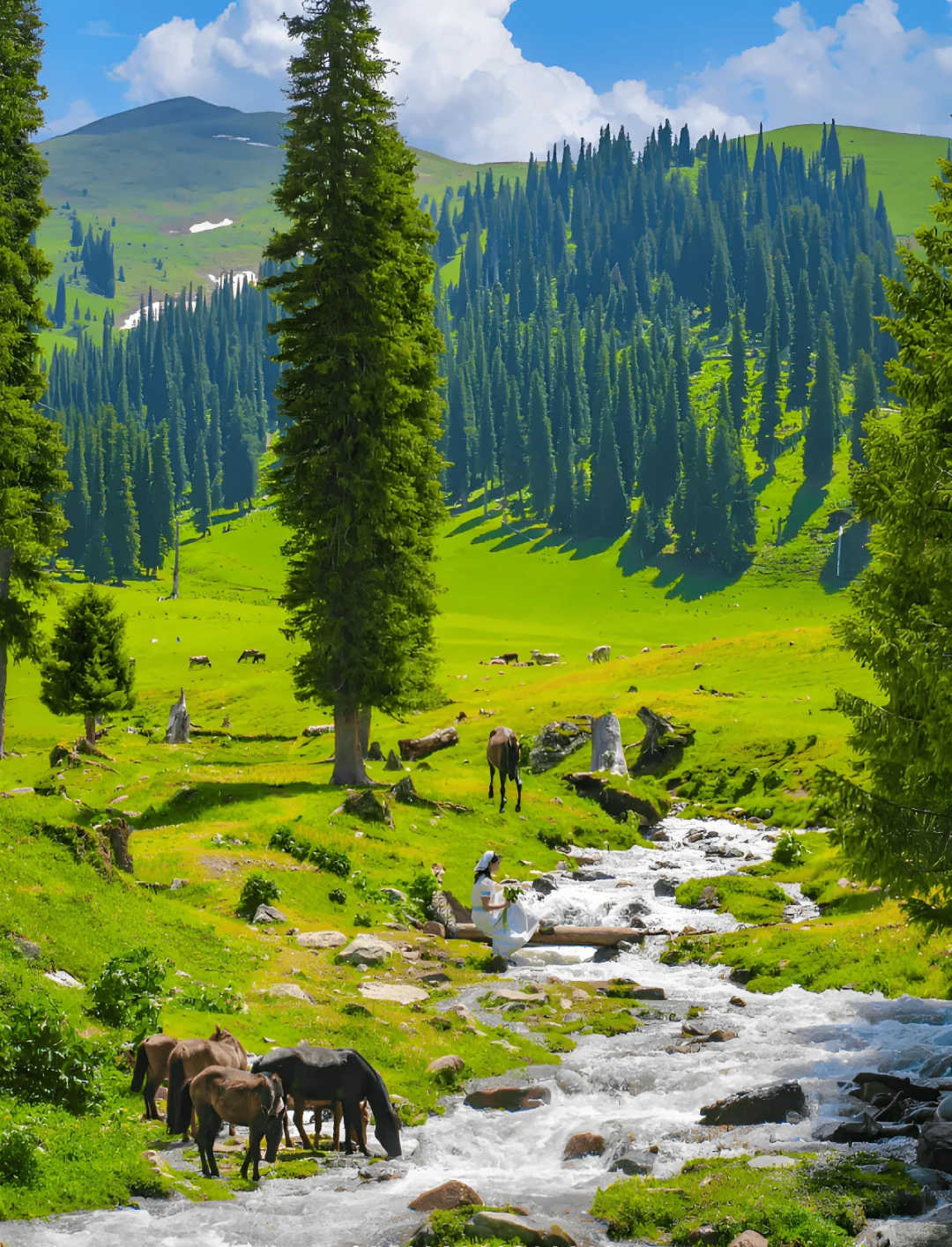 🌷白哈巴村:西北边隅的童话小村,一个以哈萨克族聚居的小村庄,这里保存着许多原始的木屋和传统的生活方式。