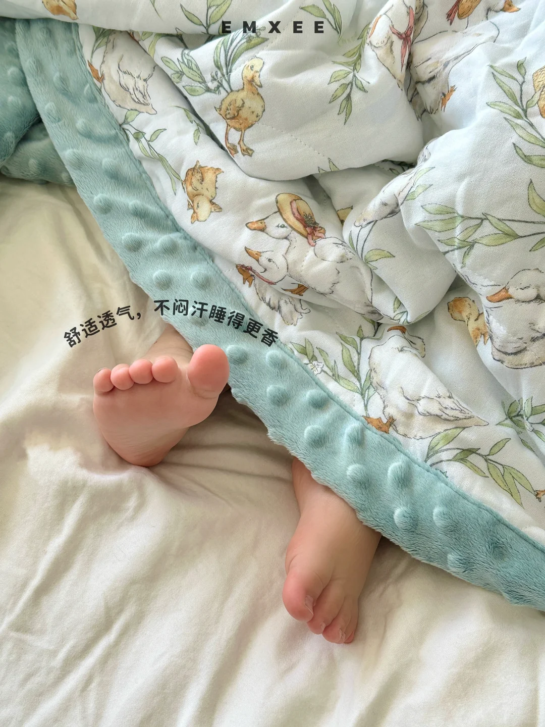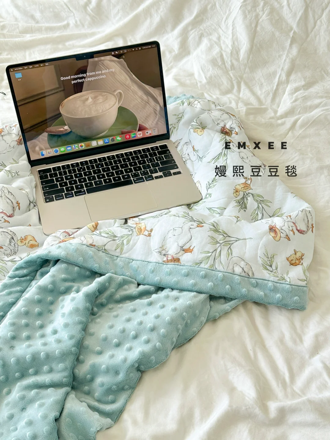 终于到了可以和宝宝钻被窝的季节咯 去年宝宝的小被子已经盖不住宝宝啦 所以立马又给他安排了嫚熙家的豆豆毯~ 真的好软好软哦~ A 面是高支高密的竹棉面层,透气性很好 开空调盖它也不会闷出汗 B 面是豆豆胎感绒毛,很亲肤🪺还原妈妈的触感 盖着它仿佛被宝宝拥抱在怀里 所以宝宝有它的陪伴才会睡得那么踏实 - 豆豆毯也可以全身机洗,不怕掉色变形哦 每次洗澡好像更软了 宝宝睡的更香了~