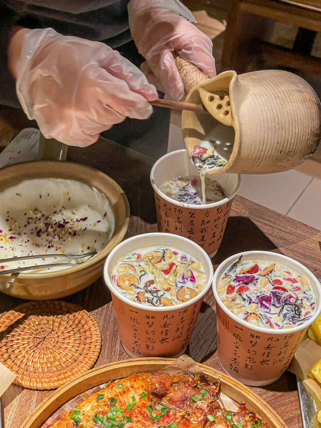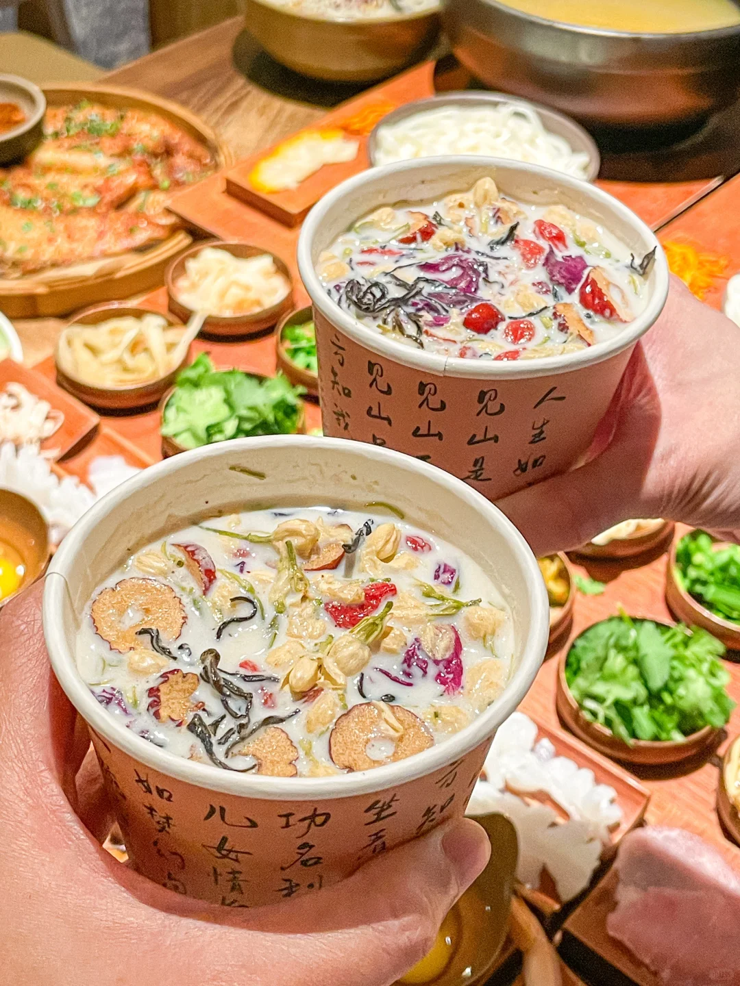 !!在上海南京西路上找到一家上汤云南米线 一口给我梦回云南了!这家店我要去10086次! 😆【过桥米线】 现熬的汤底👍🏻好鲜好浓郁 搭配十几种种食材,摆放的好有仪式感🎈 嗦米线的时候,各种食材搭配口感好丰富 - 还有卤烤!傣味烤鱼!罐罐烤奶~ 地地道道云南味