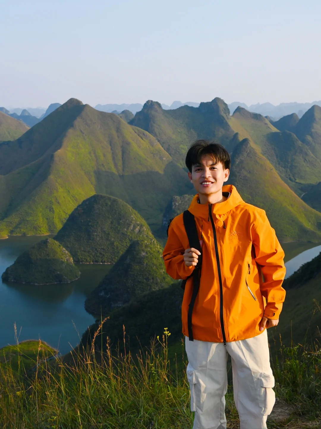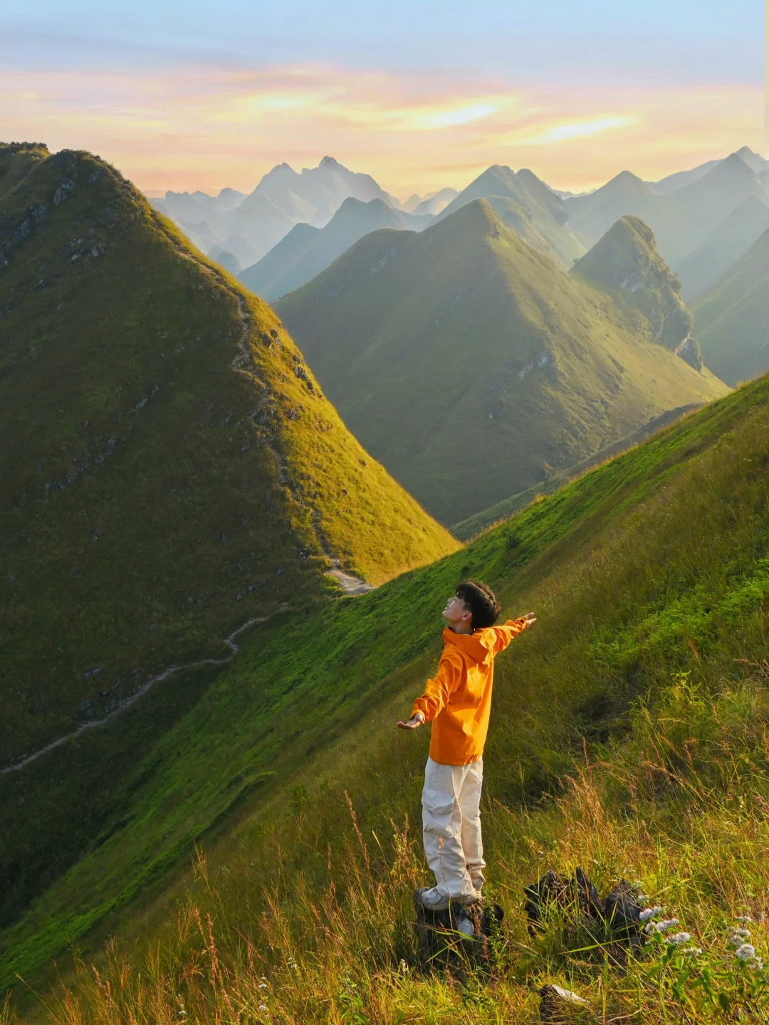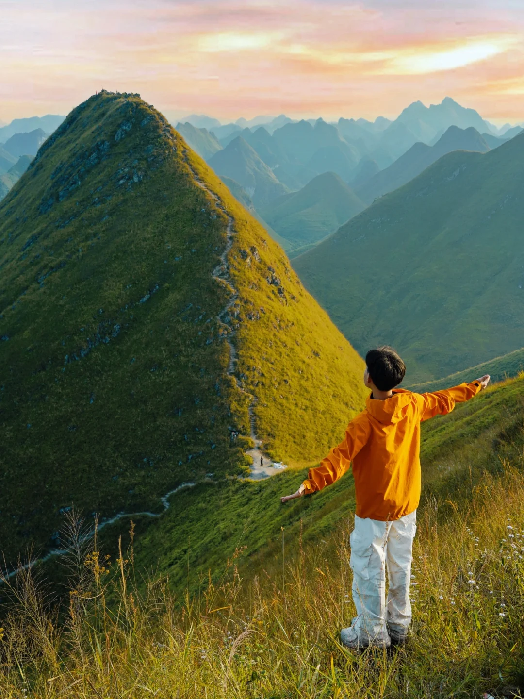 🔸橙色在黄绿色的大自然下显的格外耀眼,主角登山的感觉。
