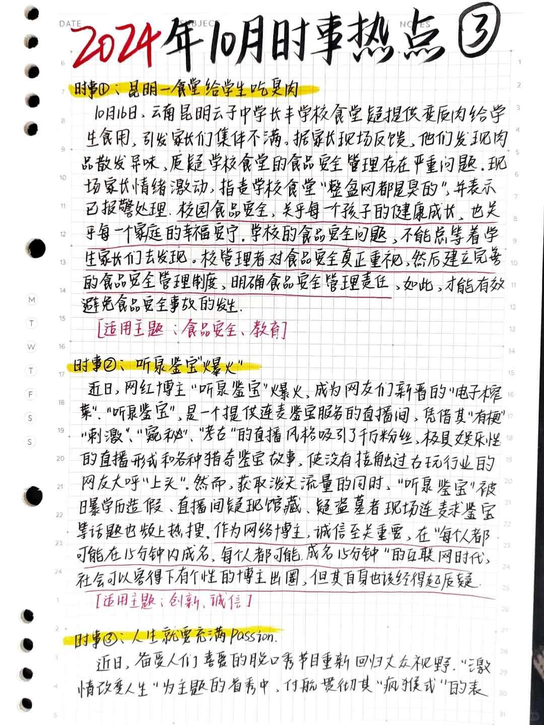 🌊10月份第三篇时事热点来啦 时事①:昆明一食堂给学生吃臭肉 时事②:听泉鉴宝“爆火” 时事③:人生就要充满passion