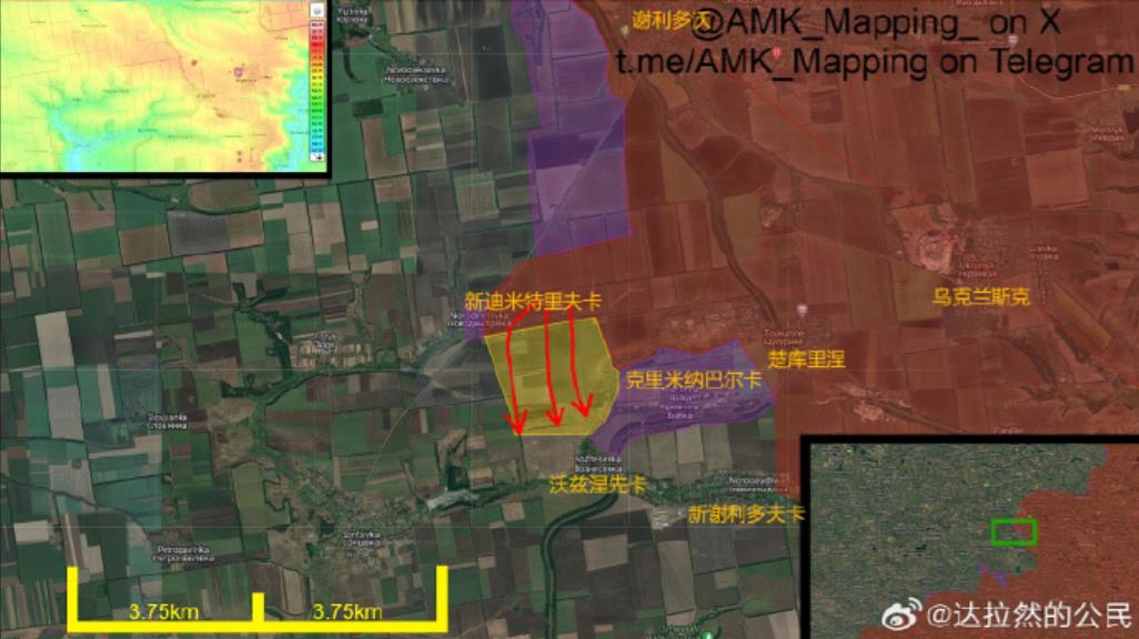 四、库拉霍沃 以北:俄军在控制了 新迪米特里夫卡 和 克里米纳巴尔卡 后,开始进攻 沃兹涅先卡。(图4)