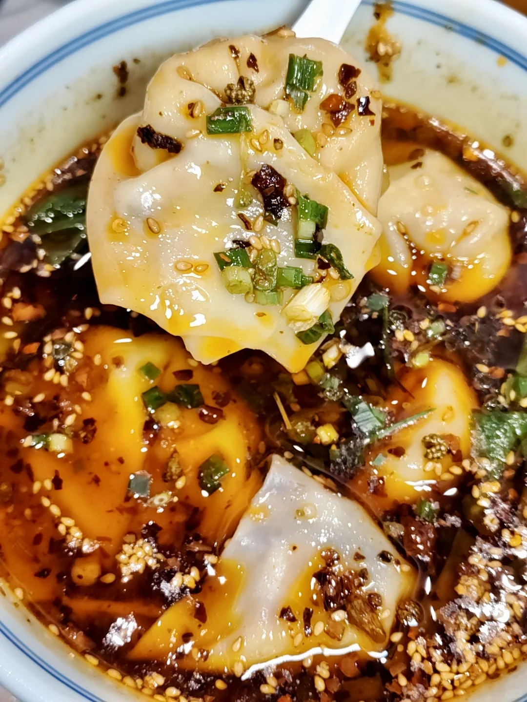 红油抄手这一份量真的也太足了吧!新鲜的吃起来口感就是好,他们家皮很薄,看得到的肉馅儿一口咬下去鲜嫩多汁啦!!