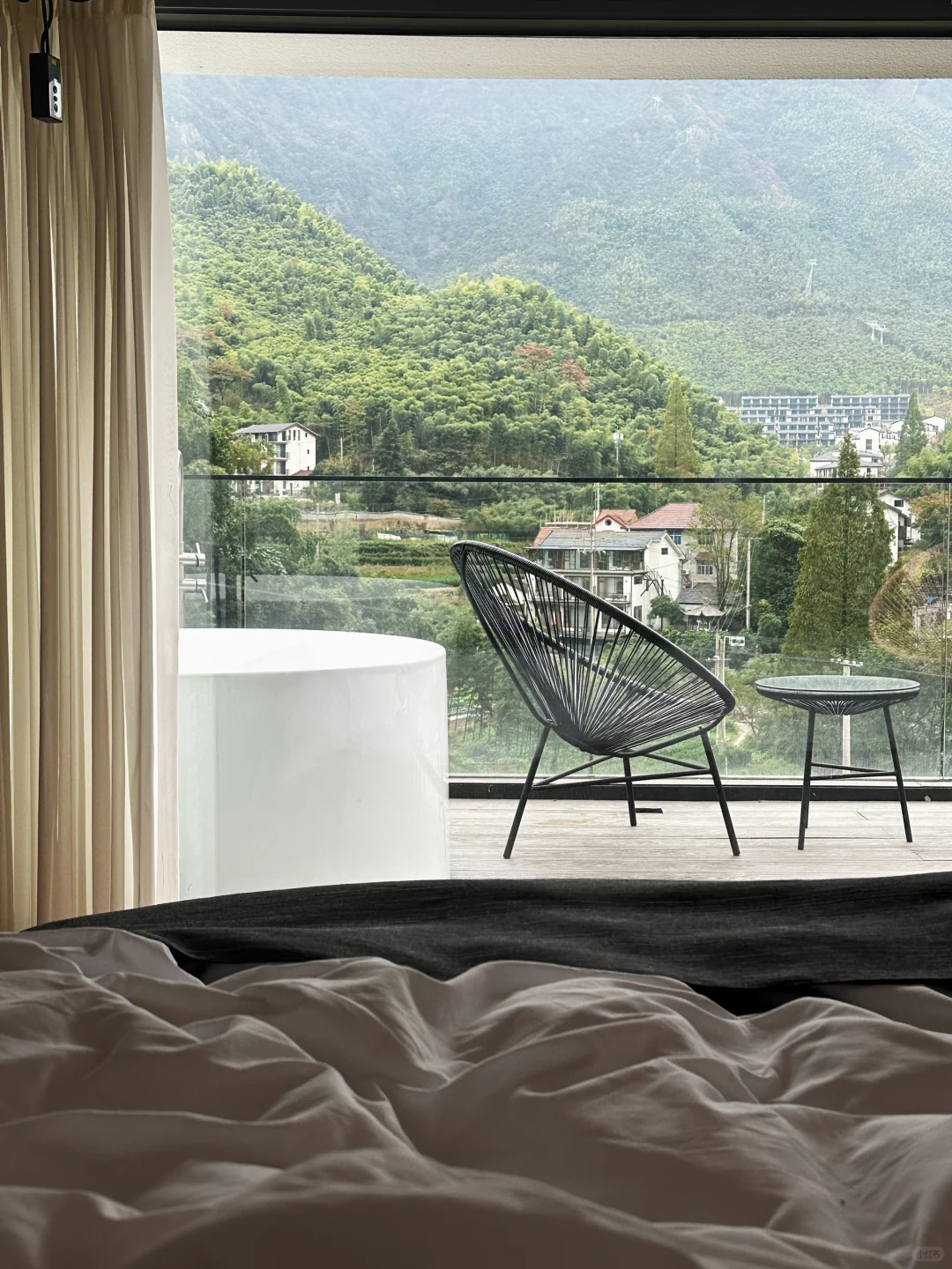 但是我遇到一个带娃来安吉 必须打卡的民宿 第二天醒来,映入眼帘的就是山景 真的太治愈了 带宝宝来山里呼吸新鲜空气 放松疲惫的身体 这里真的是不错的选择