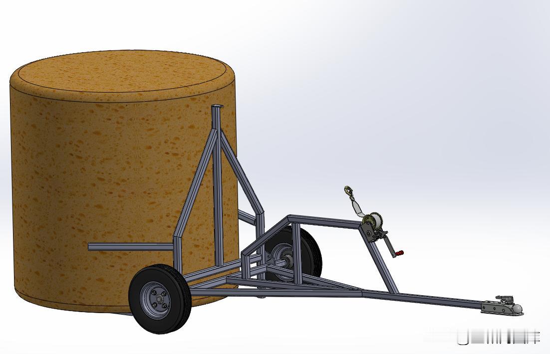 圆捆打捆机装载拖车模型分享: 一种简单的拖车,可以挂在四轮驱动车或汽车上,可以装载放置在地面上的圆形打捆机,运输到田地并轻松卸载。采用 40 毫米钢管制成。标准拖车车轴,带 8 英寸车轮,轮胎外径 400 毫米。 免费下载链接: