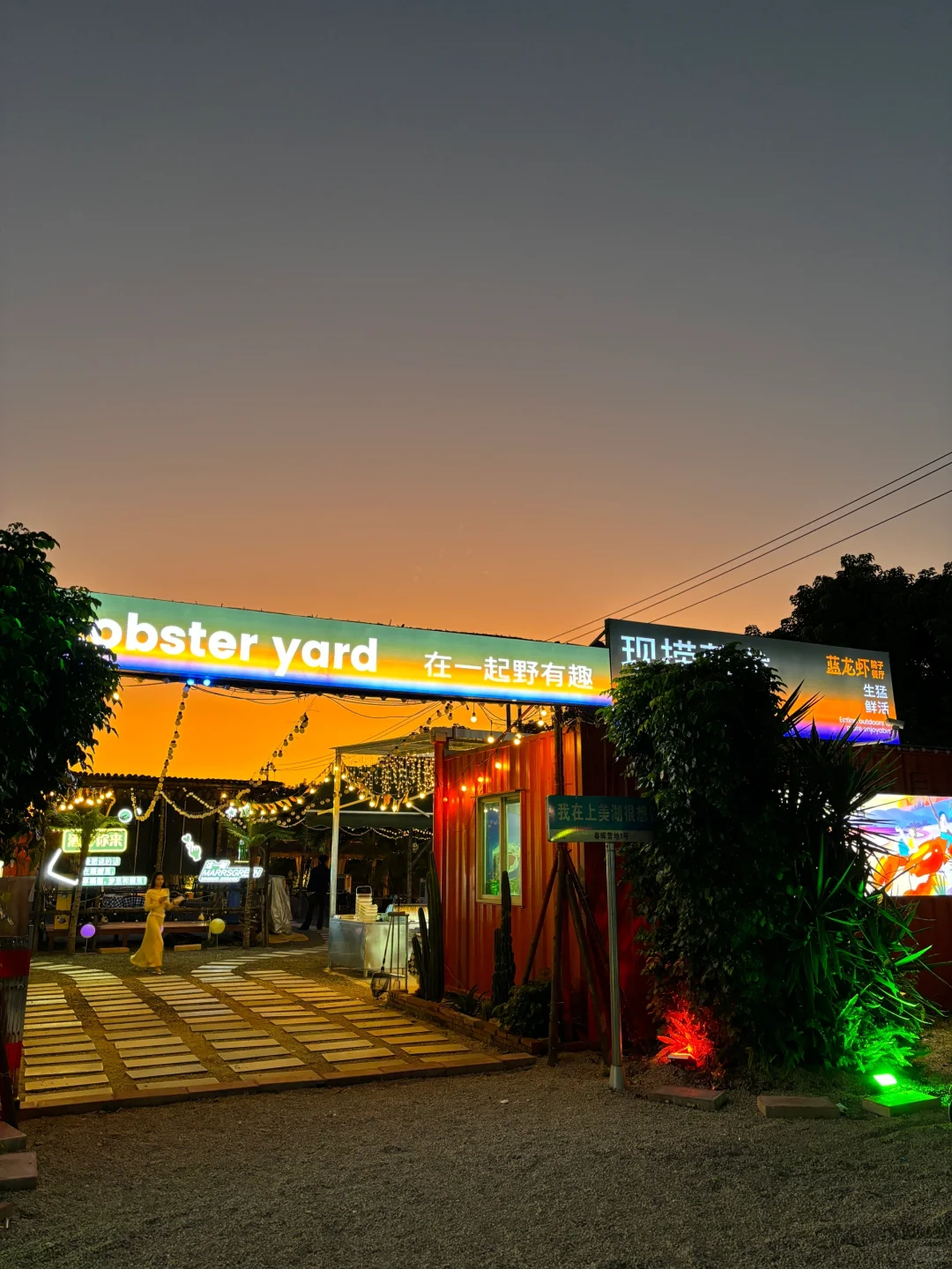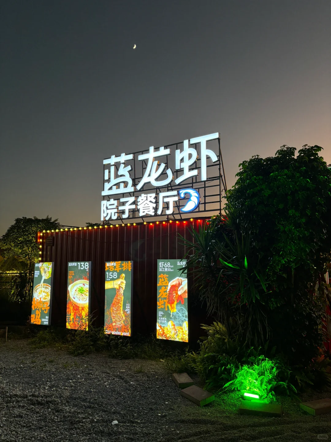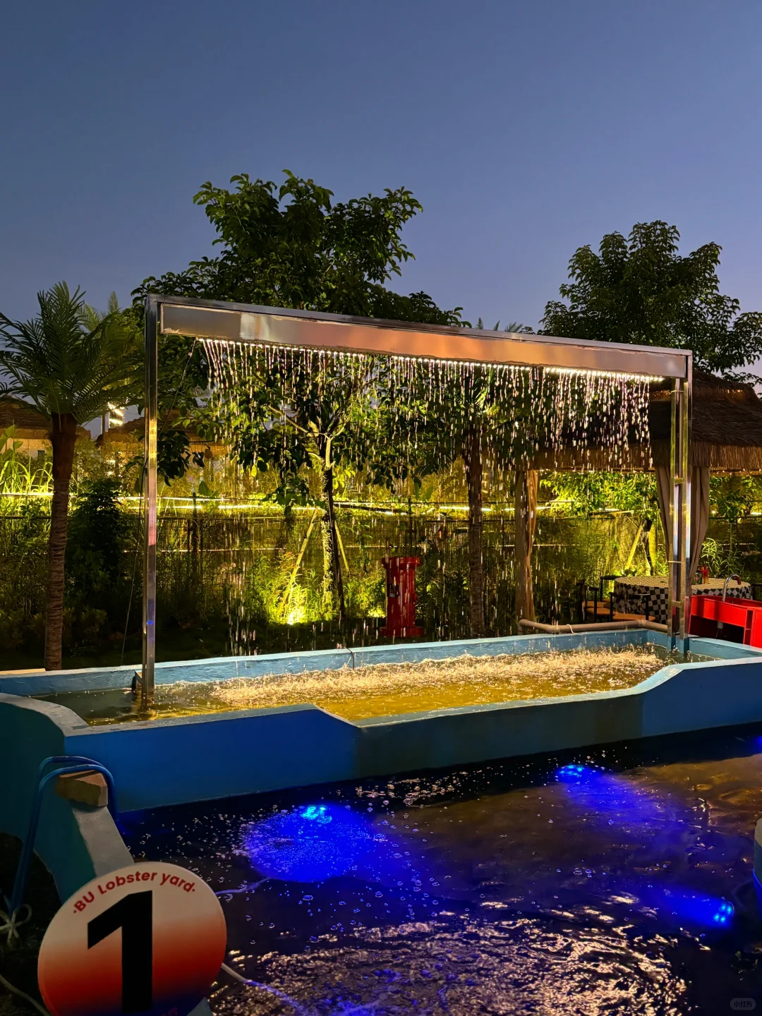 白天和晚上是两种不同风格的美 拍照起来很出片!老板热情 店里还有一整片龙虾池(真的是蓝色的青龙!)