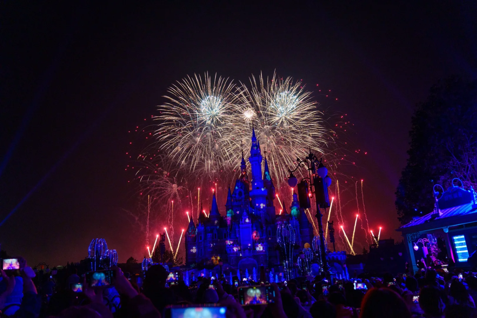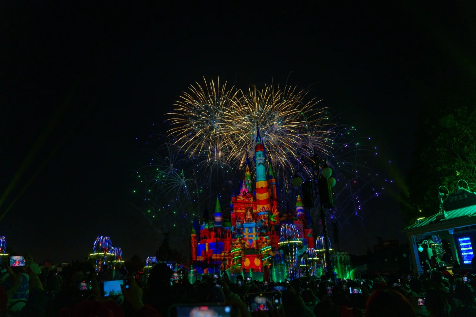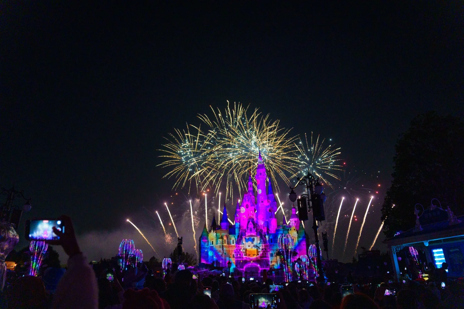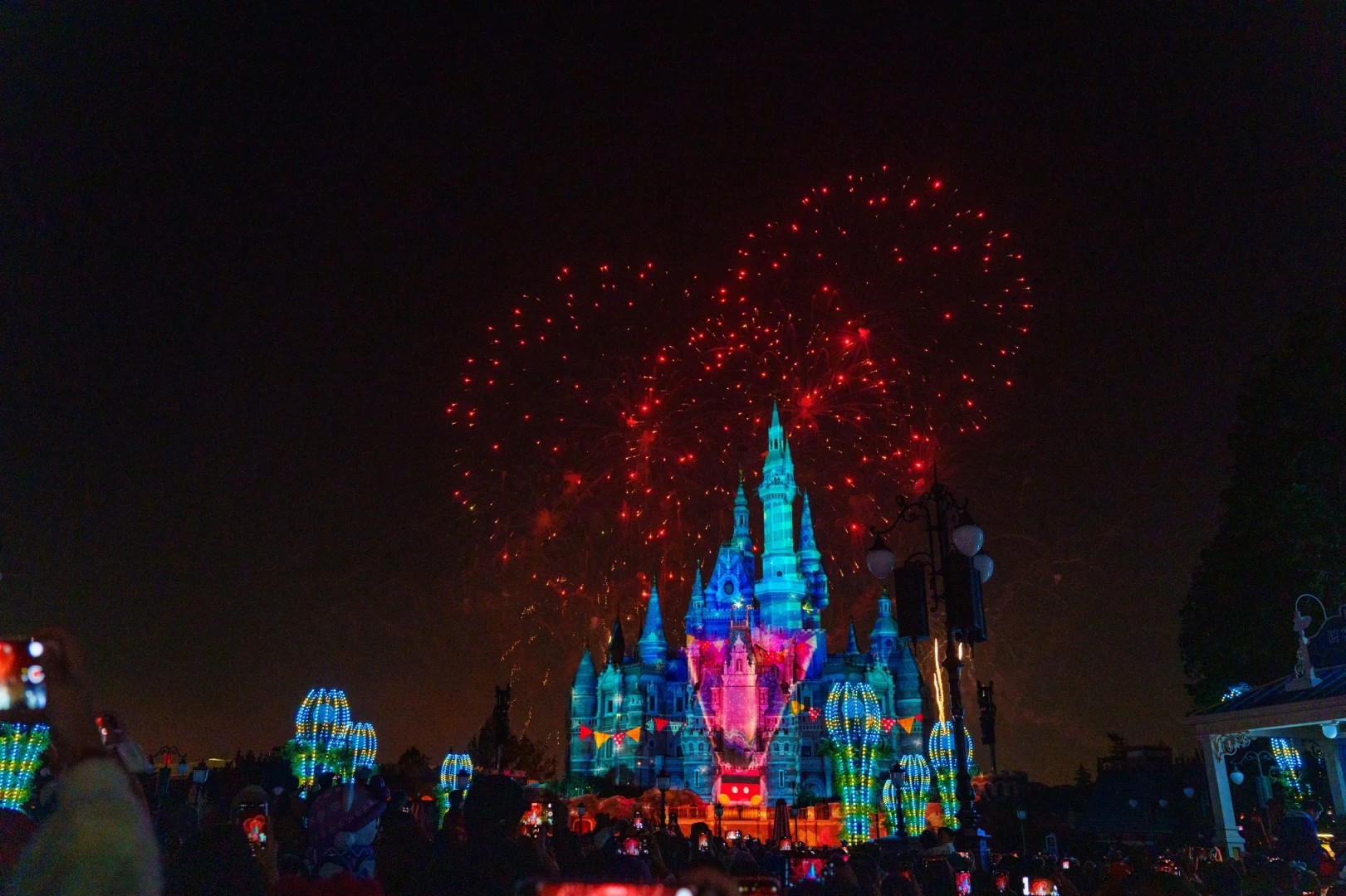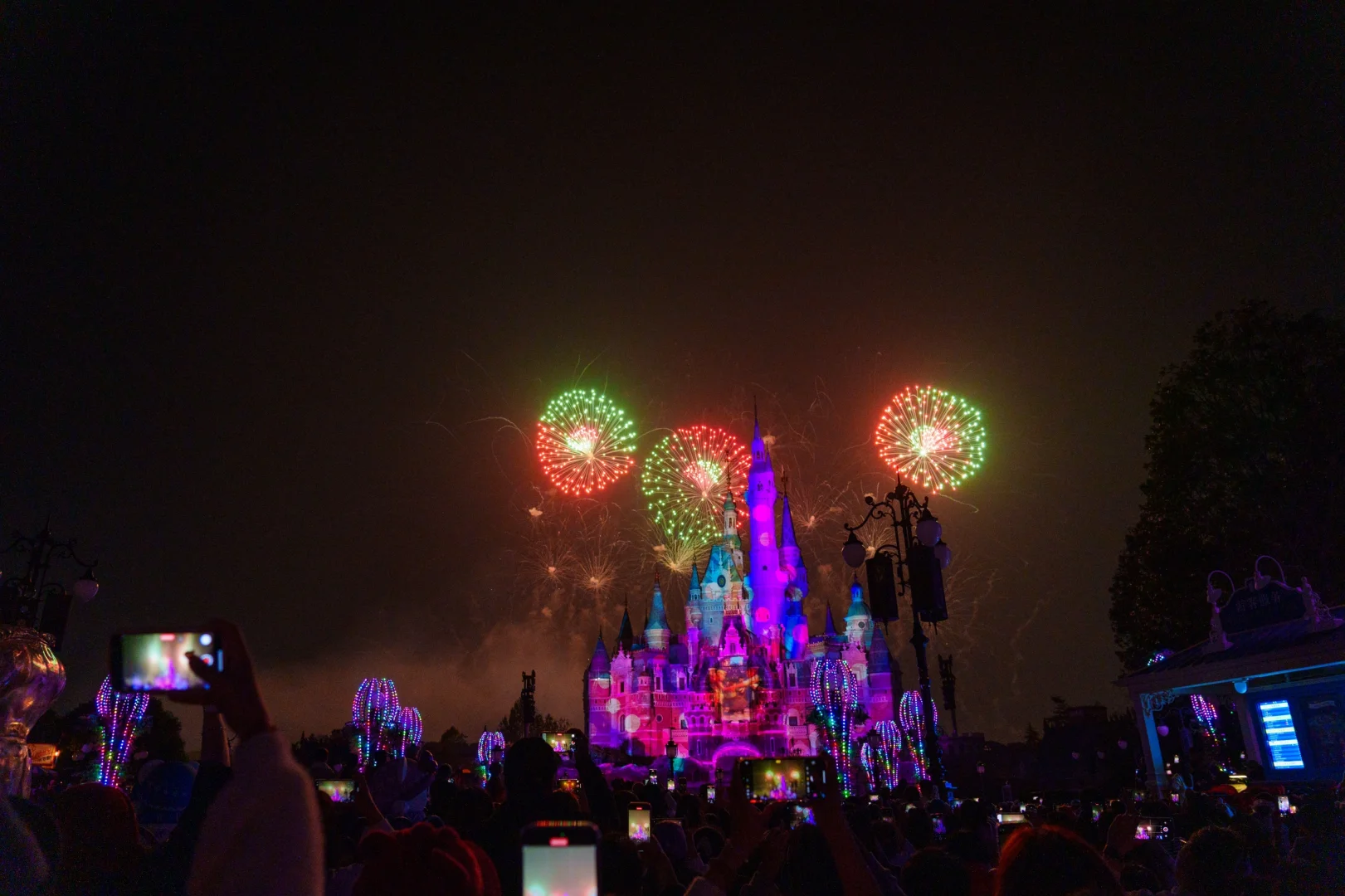迪士尼超大号米奇米妮生日烟花让我给拍的很小的样子[石化R]这以后谁还敢找我拍照[哭惹R]