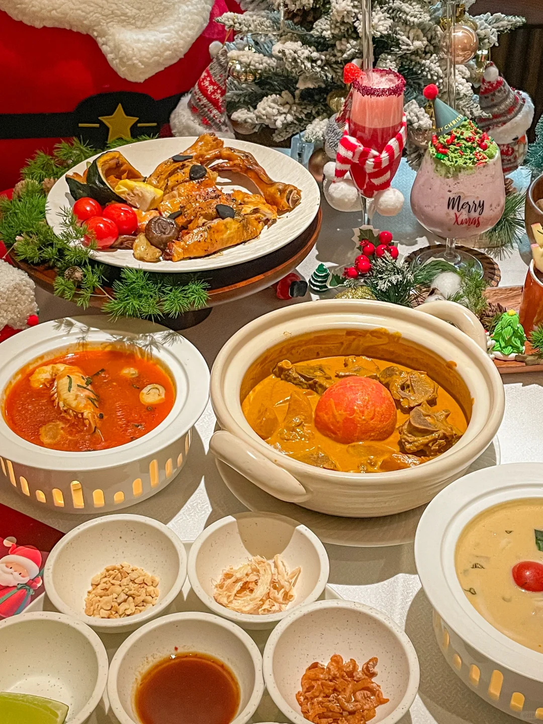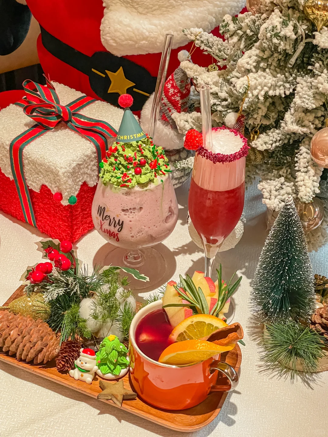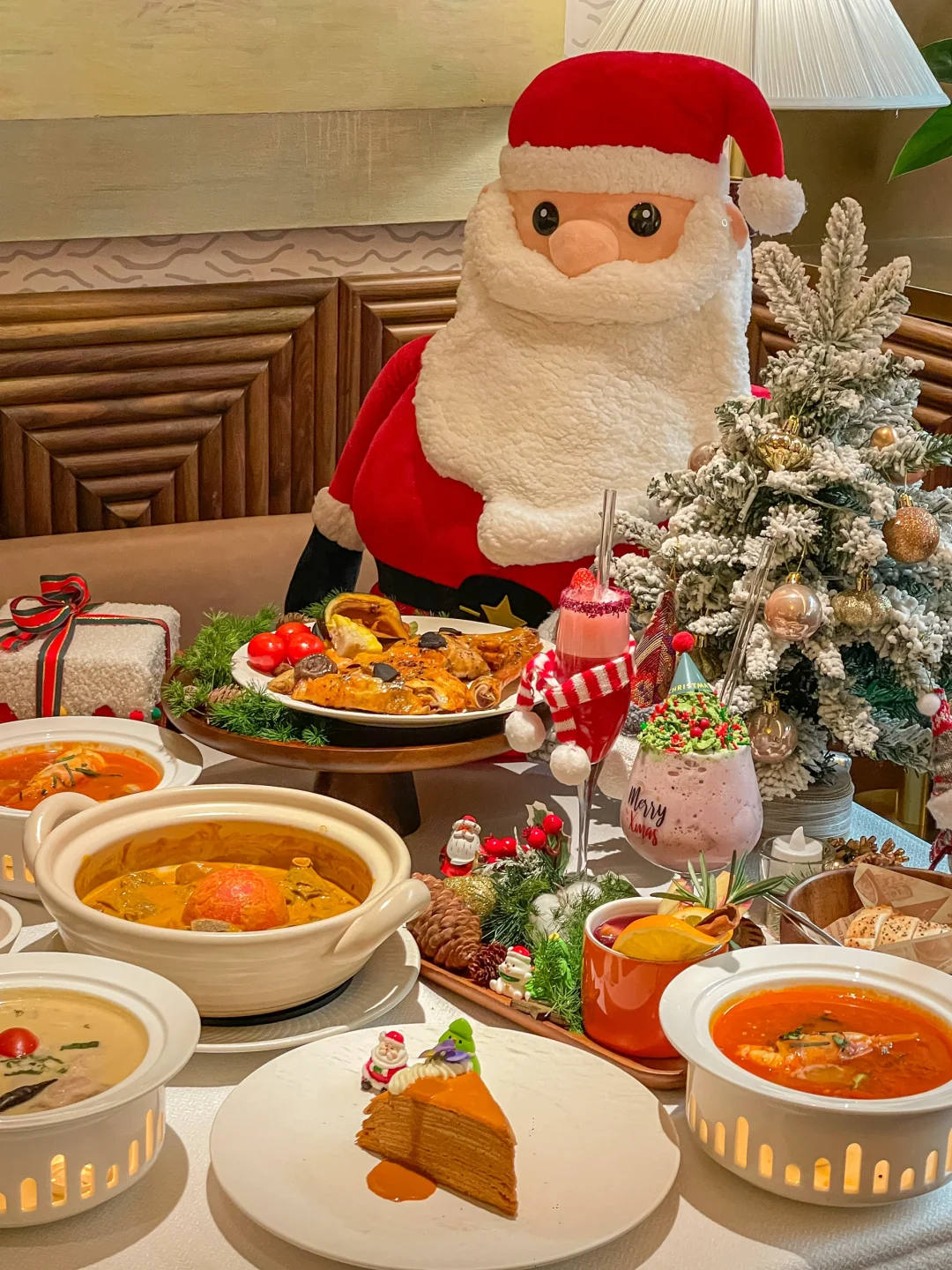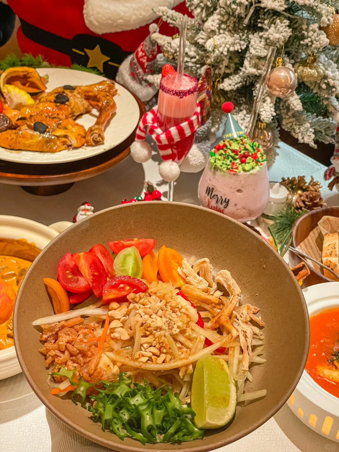 静安寺好美的圣诞氛围餐厅! 来5G过圣诞🎄 这家的泰国菜太戳我啦! 饮品做的好有圣诞感🍹 还点了黑松露烤鸡,泰茶千层,椰奶鸡汤,黄咖喱羊肉好好吃🤤